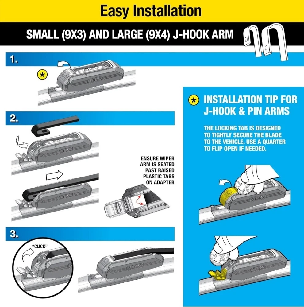 Auto Part Position: Front Brand: Rain-X Material: Natural Rubber Fit Type: Vehicle Specific Fit Item Length::22 Inches Patented Water Repellent Formula - This 2-In-1 Wiper Blade Plus Rain Repellent Applies Patented Rain X Water Repellent Directly To Your Windshield, Both Clearing And Repelling The Elements Superior Driving Visibility And Safety - Watch Water Magically Bead Up And Roll Off Your Windshield While You Drive, Providing You With Superior All-Weather Driving Visibility, Safety, And Comfort Easy Installation And Universal Fit - The Rain-X Universal Adapter Is Easy To Use And Fits 96% Of Vehicles. Scan The QR Code On The Back Of The Package For Installation Videos Advanced Beam Wiper Blade Technology - Provides Uniform Pressure Points Along The Length Of The Blade, Allowing It To Hug The Curvature Of The Windshield For A Smooth, Clean Wipe Ultimate All-Weather Performance - Designed To Clear Your Windshield In Extreme Weather Conditions, Such As Ice, Snow, And Sleet Delivering Longer-Lasting, Superior Wipe Performance Please remove the yellow squeegee cover after installation to ensure optimal performance. Failure to do so will prevent the wiper blades from working properly.