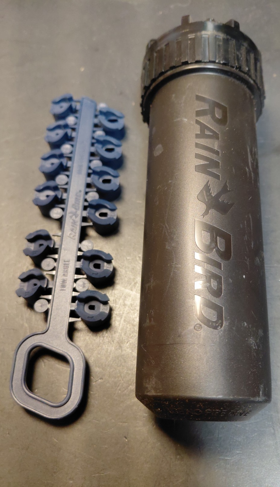 Rainbird 5000 Plus Sprinkler Full Circle 4" with Multiple Nozzle Tree Plastic Riser 5004PLFC 3/4" Inlet 4 in. 5000 Series Part/Full-Circle Pattern Pop-up Rotor with Flow Shut-Off Faster maintenance with a new self-cleaning arc adjustment screw - Heavy-duty cover assembly for extra durability Rain Curtain Nozzles - Slip clutch mechanism for quick adjustment on installation Heavy-duty retract spring assures positive pop-down - Top-adjust arc adjustment requiring only a flat-blade screwdriver 40 - 360 Degree arc rotation and reversing full circle rotation in one Relax with the knowledge your landscape is being watered by reliable 5000 Series Rotors and industry-leading Rain Curtain Nozzle Technology. Rain Bird® 5000 Series Rotors are ideal for medium to large-size lawns and evenly distribute water from 25 to 50 feet. Outstanding Results Superior Distribution Uniformity. 5000 Series Rotors with Rain Curtain Technology are engineered to deliver a uniform spray pattern, giving you a consistently green lawn throughout. Superior Wind Resistance The larger water droplets produced by Rain Curtain technology prevent misting and airborne evaporation so the right amount of water is delivered to the right place, saving you water and money. Superior Close-in Watering Gentle close-in watering eliminates dry spots around the rotor, prevents seed washout and allows the turf to grow healthy with no matting or bending. PRS Feature In-stem pressure regulator (PRS) reduces operating pressure to 45 psi (3,1 bar) for optimal nozzle performance PRS saves water by: Eliminating head-to-head pressure variations Eliminating misting due to high pressure Improving nozzle distribution uniformity by operating the nozzle at optimum pressure Maintenance-free design can be easily retrofitted into existing 5000/5000 Plus, T-Bird™ and Hunter® PGP™ (using UPG model) rotor cases without digging up the entire body Pressure: 25-75 psi (1,7 to 5,2 bar) Items have not been utilized in the field or dry fit. Please see pictures for reference! Feel Free to Communicate, I answer all messages within 24 hours Thank you for shopping my Colorado Small Business! Sprinkler Irrigation