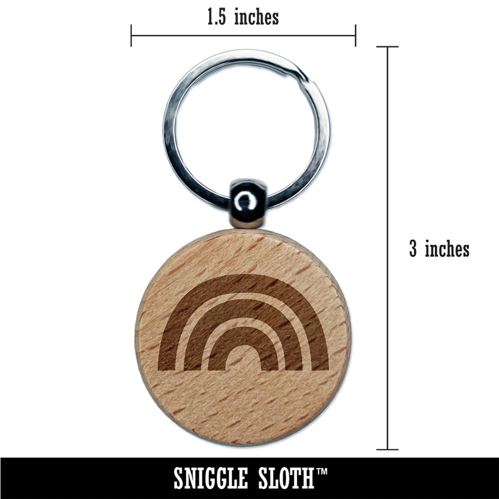 Rainbow Fun Doodle Engraved Wood Round Keychain Tag Charm