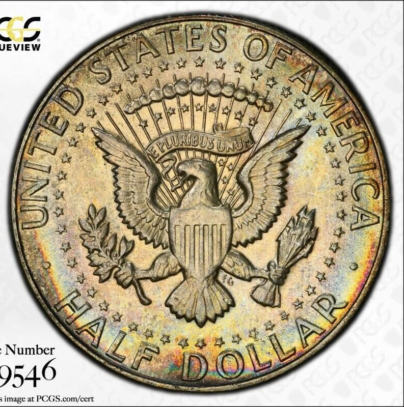 Rainbow Toned 1965 Silver MS 65 John F Kennedy Silver Half Dollar PCGS Slab 130