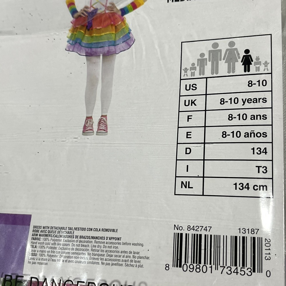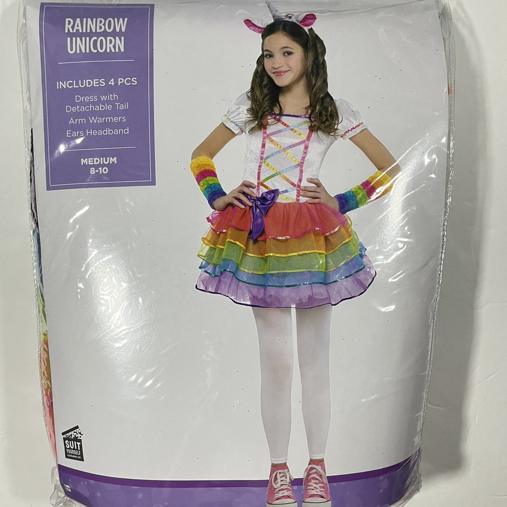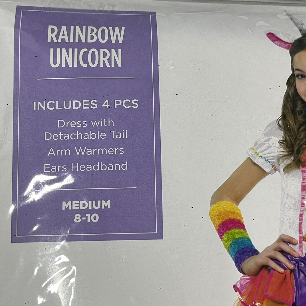 Rainbow Unicorn Costume Kids Girls Halloween Dress Up Size Medium 8-10 Years NEW