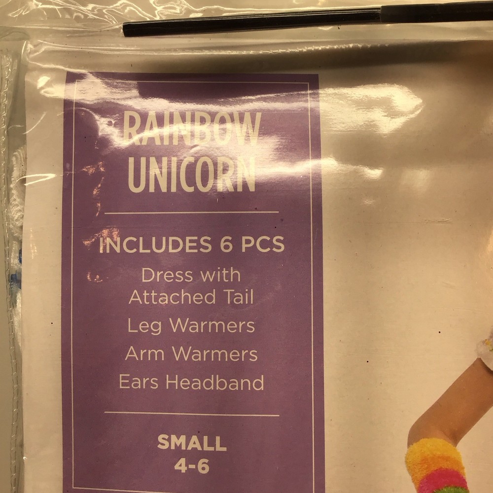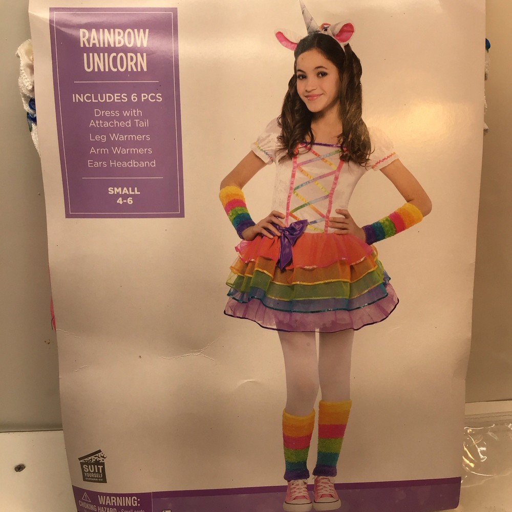 The Rainbow Unicorn Halloween Costume is a vibrant and fun outfit perfect for young girls looking to dress up for Halloween. The 6-piece set includes a colorful rainbow unicorn design, making it easy to transform into a magical and whimsical creature. With a size small, this costume is sure to fit just right for a comfortable and festive look. Perfect for Halloween parties or trick-or-treating, this costume will bring joy and smiles to any young girl's face. New in package