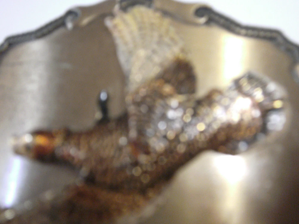 Vintage Raintree Belt Buckle Pheasant Lots of fancy scroll work around edges