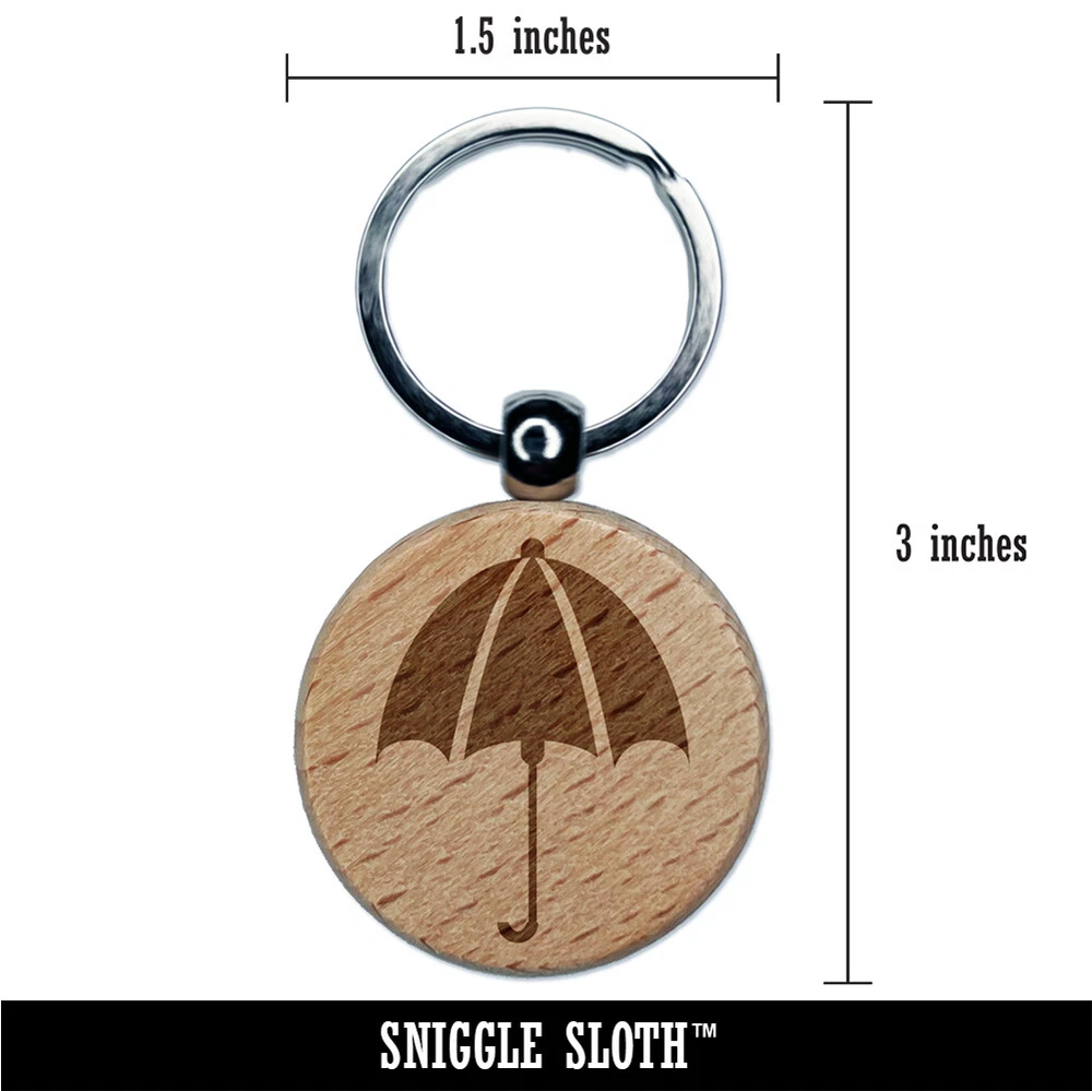 Rainy Day Umbrella Engraved Wood Round Keychain Tag Charm