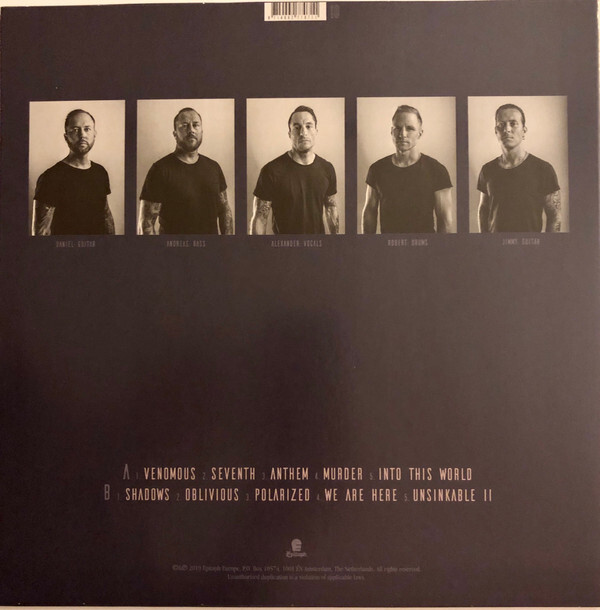 Media Condition : Mint (M) Sleeve Condition : Mint (M) + Please note - All images are stock images and may not represent the Final Product, please read the Condition Grading and Description Details for any defects or variations. New and sealed, on sale! Notes : 80 copies of this were also sold as signed through swedish record store 'Bengans'. Comes with printed inner sleeve. ©&℗ 2019 Epitaph Europe. Track List : A1. Venomous 2:42 A2. Seventh 3:00 A3. Anthem 2:38 A4. Murder 2:40 A5. Into This World 3:34 B1. Shadows 2:44 B2. Oblivious 3:24 B3. Polarized 2:35 B4. We Are Here 2:47 B5. Unsinkable II 3:23 Barcode and Other Identifiers : Barcode 8 714092 770711 Barcode 8714092770711 Label Code LC 02576 Matrix / Runout 196776E1/A PIRATES PRESS - EPIT 7707-1 A Matrix / Runout 196776E2/A PIRATES PRESS - EPIT 7707-1 B Rights Society BIEM/STEMRA Manufactured By Pirates Press Phonographic Copyright (p) Epitaph Europe Copyright (c) Epitaph Europe Pressed By GZ Media Recorded At Top Floor Studios Recorded At MGStudio (2) Mixed At Oral Majority Recordings Mastered At Bohus Sound Recording