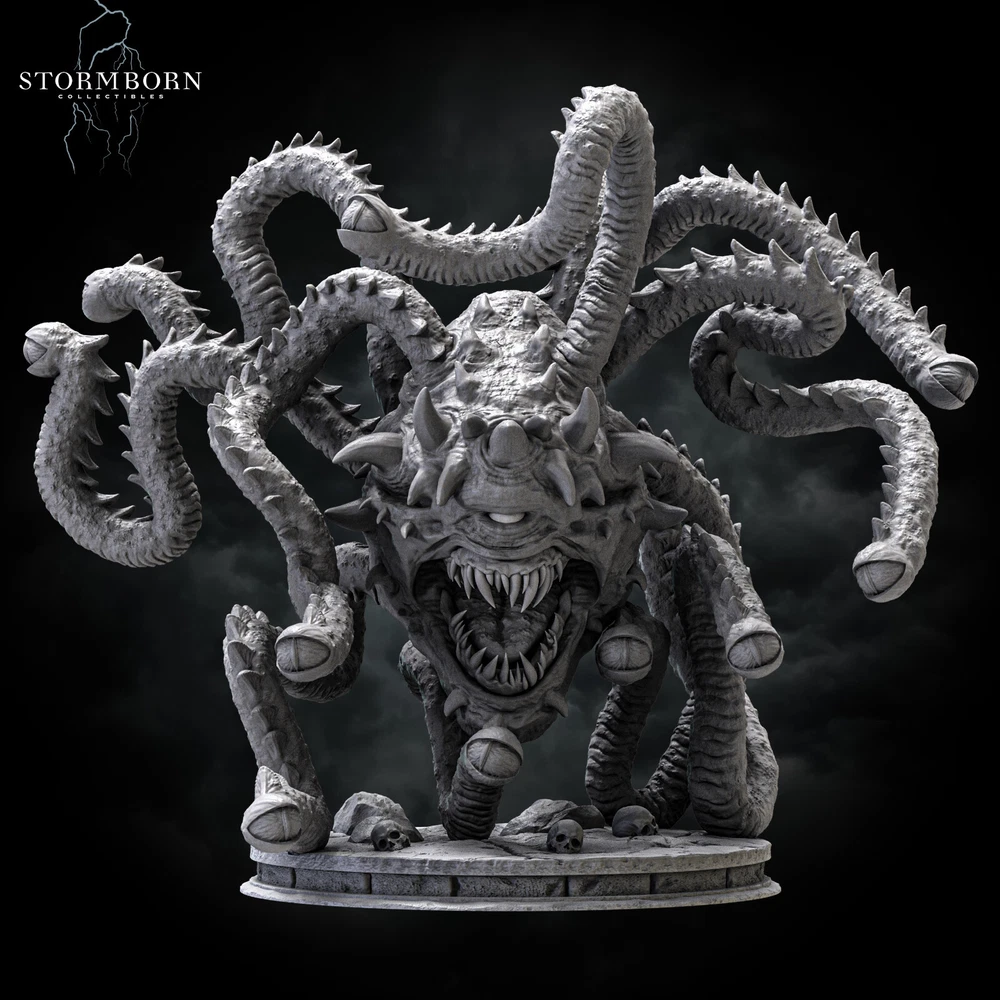 Ralakor, Lord of the Beholders from Stormborn Collectibles This listing is for a resin 3D printed physical version of the pictured model. Height: 96.5 mm (excluding base) Width: 127 mm Base Diameter: 70 mm Painting Commissions: If you would like your miniature painted, we accept commissions on any model in our store. Please message or submit a custom order if interested. Examples of painted work are available on request or at instagram (@grimini.minis) At Grimini's, our miniatures are printed to order in ABS-like resin on a 12k printer for greater durability and sharper detail. We take pride in our work and aim to provide prints of the highest quality. That is to say, if we see a layer line, we weep. Our resin of choice is light grey unless otherwise stated in listing. Other colors, brands, and formulations available on request. After printing, your miniature is washed, cured, and cleaned to a high standard before we ship it to you unassembled and unpainted. Assembly: Assembly instructions are not provided by Stormborn Collectibles but if you need help assembling your model we will assist you the best we can. We are happy to assemble your model for you on request but we recommend against this in order to prevent damage during shipping. Even so, we prepare the model to a high standard and dry-fit all unassembled pieces. However, as with any resin model kit, the miniatures generally require slight preparation. Small imperfections such as minor gaps or support marks may be expected and can be easily filled or sanded. Shipping: Time to ship is generally 3-5 business days for small to medium models and 5-7 business days for larger models. We often ship sooner but take care not to rush where quality is concerned. Orders containing more miniatures may take longer. We will contact you if we expect any delay. License: Grimini's is a commercially licensed seller of Stormborn Collectibles models. Any miniature from their selection is available on request (with rare exceptions). You can check out their work on My Mini Factory. Rendered images are provided by Stormborn Collectibles. All other images and video are samples of our printed product. We look forward to doing business with you and are glad to answer any questions you may have. New listings are added regularly, so give our store a follow if you would like to receive notifications. If there is ever a problem with your order, please reach out to us. The happiness of our customers is first priority and we will do what we can to make your experience the best. Happy painting and happy gaming!