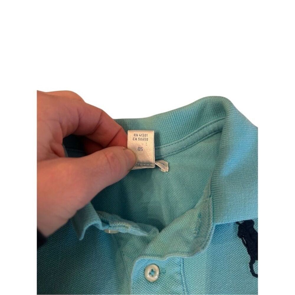 Ralph Lauren baby boys light blue short sleeve polo shirt. This classic polo features the iconic Big Pony logo embroidered in black on the chest and a black number '3' applique on the sleeve. Includes a two-button placket and a comfortable collar. Perfect for everyday wear, playdates, or a casual family outing. Department: Unisex Baby & Toddler Type: Polo Theme: Horse Sleeve Length: Short Sleeve Pattern: Solid Style: Basic Material: 100% Cotton Neckline: Collared Features: Breathable, Stretch, Logo Fit: Regular Closure: Button Accents: Embroidered, Logo, Button Fabric Type: Knit Season: Spring, Summer, Fall Occasion: Casual Keywords: Ralph Lauren Kids, Baby Polo, Designer Baby, Iconic Pony, Classic Style, Playdate Outfit, Casual Wear, Embroidered Logo, Applique Number, Short Sleeve, Summer Baby, Toddler Fashion All items come from a smoke free, pet friendly home. All of items unless NWT or Dry Clean Only are washed with Tide. We try our best to disclose any flaws with items, if we miss something please reach out and let us know. We offer combined shipping on all our items. We do take measurements of our clothing listed for sale. Please compare the measurements to something you already own.