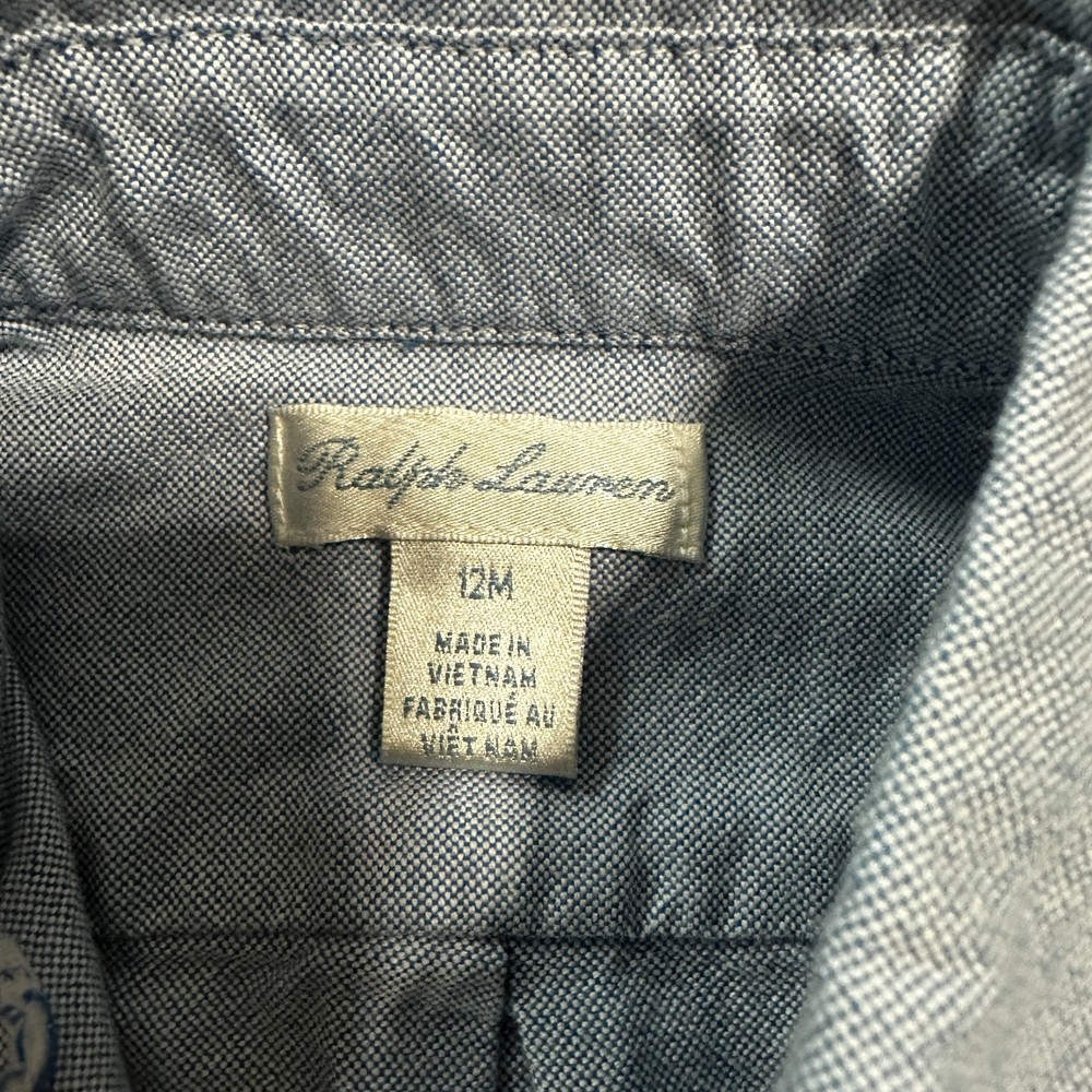 Classic and timeless, this Ralph Lauren boys’ long sleeve button-down shirt in blue is perfect for everyday wear, family photos, birthday parties, or special occasions. Made from soft, quality cotton with a sharp collared design. Details: Brand: Ralph Lauren Size: 12 Months Style: Long Sleeve Button-Down Shirt Color: Blue Material: 100% Cotton Condition: Gently used, no holes or stains. Features: Classic collared neckline Full button front closure Long sleeves with button cuffs Soft, breathable cotton for all-day comfort Polo logo for that signature Ralph Lauren look A versatile and stylish wardrobe staple that pairs easily with jeans, chinos, or shorts!
