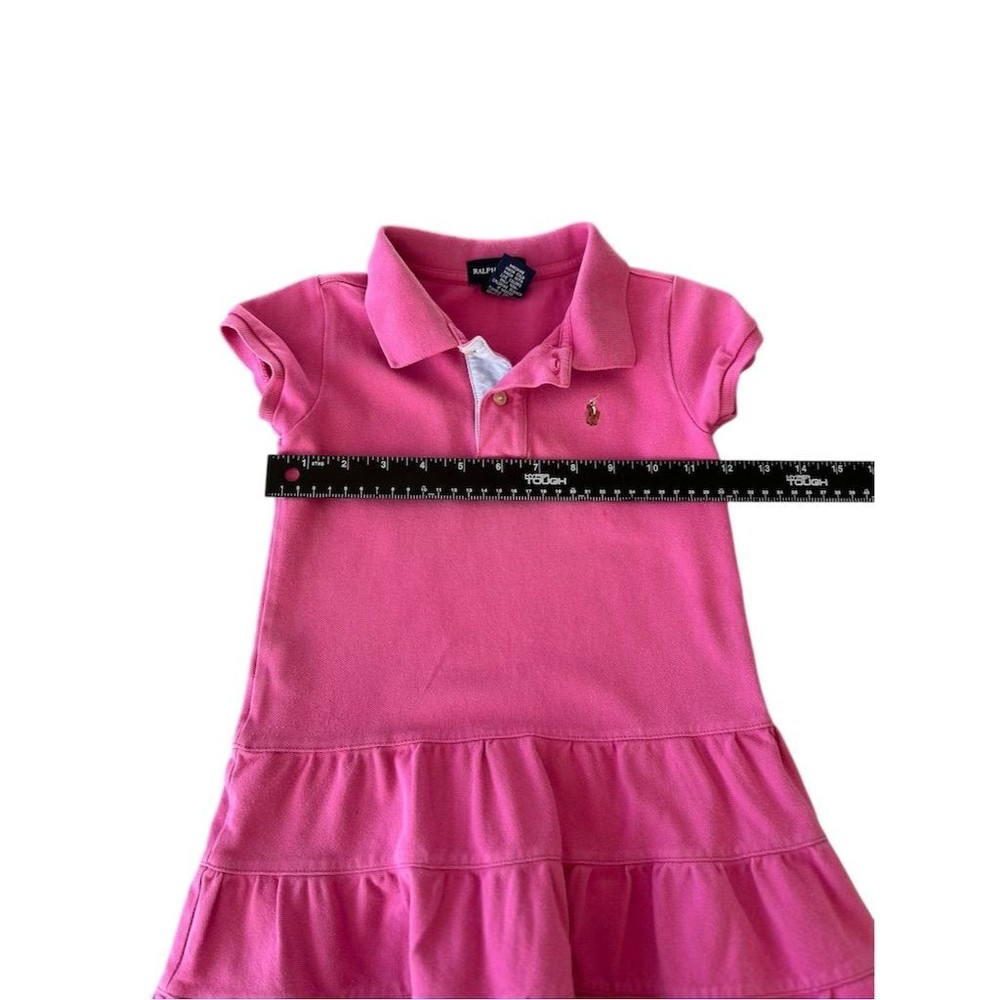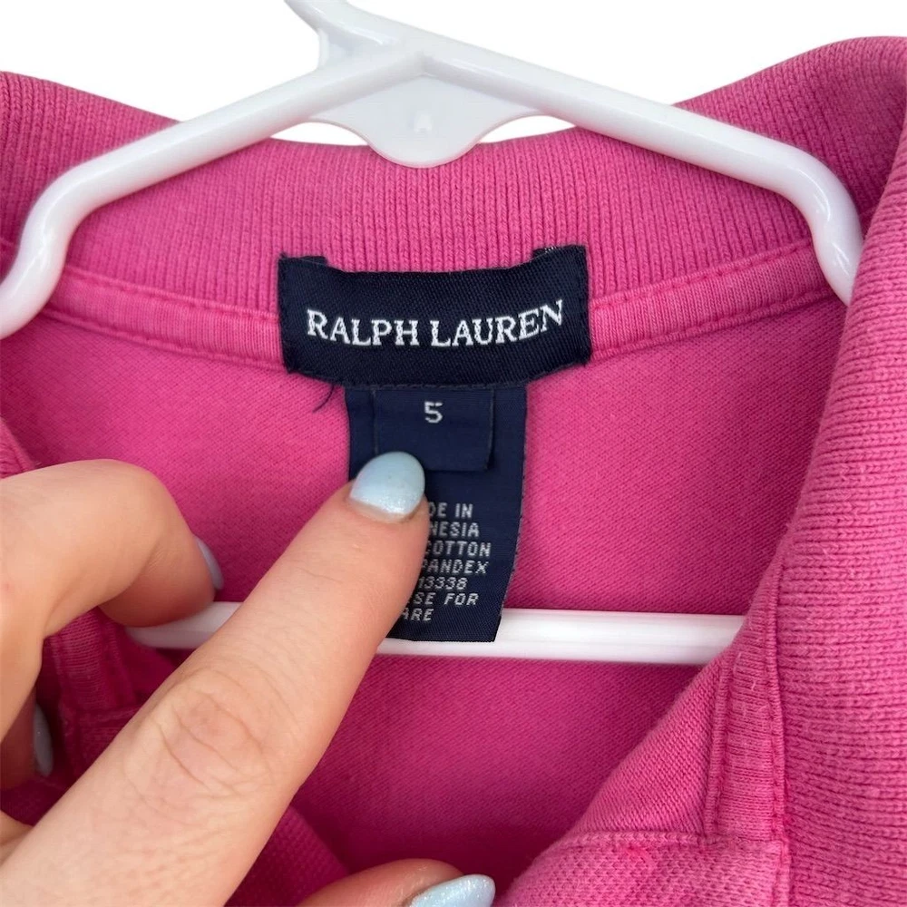 Brighten up your little one's wardrobe with this charming Ralph Lauren polo dress in a delightful pink hue. Perfect for casual outings or classic-themed gatherings, this short dress features a playful tiered skirt and a signature embroidered logo, adding a touch of elegance to everyday wear. The collared neckline and short sleeves make it ideal for warm days, while the cotton-spandex blend ensures comfort and ease of movement. Despite some minor flaws, this dress remains a stylish choice for any casual occasion. Few stains noted please review photos. Fading present Keywords: Ralph Lauren, polo dress, pink dress, girls' dress, casual wear, classic style, short dress, tiered skirt, embroidered logo, collared neckline, short sleeve, cotton dress, spandex blend, size 5, girls' fashion. Brand: Ralph Lauren Style: Polo Dress Color: Pink Dress length: Short Department: Girls Size: 5 Theme: Casual, Classic Sleeve length: Short Sleeve Occasion: Casual Material: Cotton, Spandex Neckline: Collared Country of origin: Indonesia Features: Tiered Skirt, Embroidered Logo Mpn: 113338 Smoke free household. Pet friendly household. Please see pictures for measurements. Feel free to reach out with any questions and we’ll try to answer as best we can.