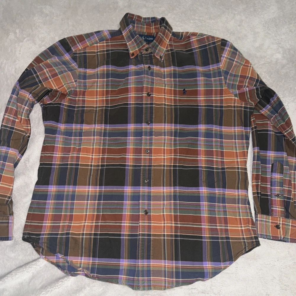 Elevate your wardrobe with this stylish Ralph Lauren button-down shirt. The shirt features a classic fit, long sleeves, and a collared neckline with a button-down closure. The plaid pattern adds a touch of sophistication to the shirt, making it perfect for any occasion, whether it be a wedding, party, or business meeting. Crafted from breathable cotton fabric, this shirt is machine washable and suitable for all seasons. It also features embroidered accents and the iconic small pony and Ralph Lauren characters. This shirt is a must-have for any fashion-forward man who wants to make a statement.