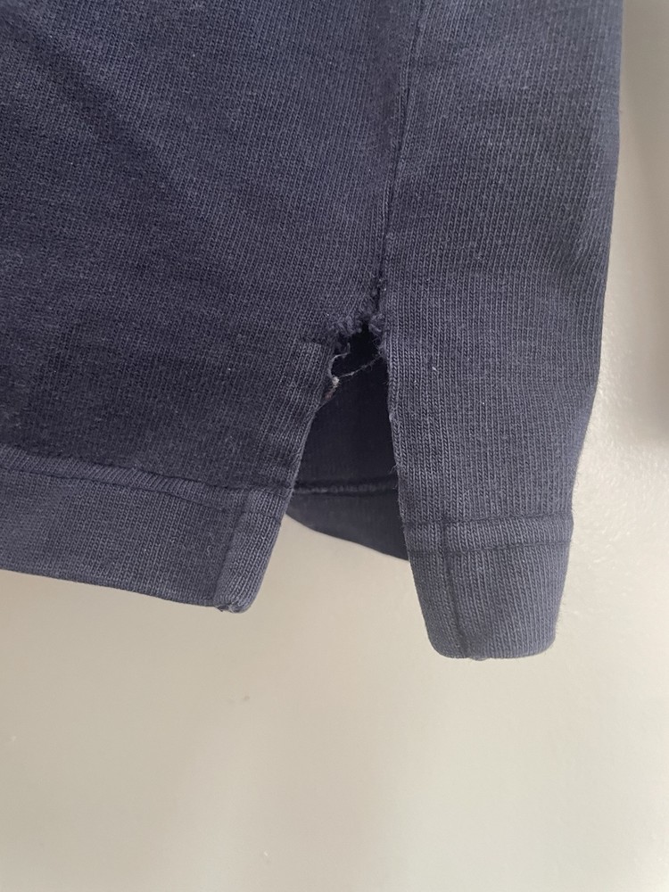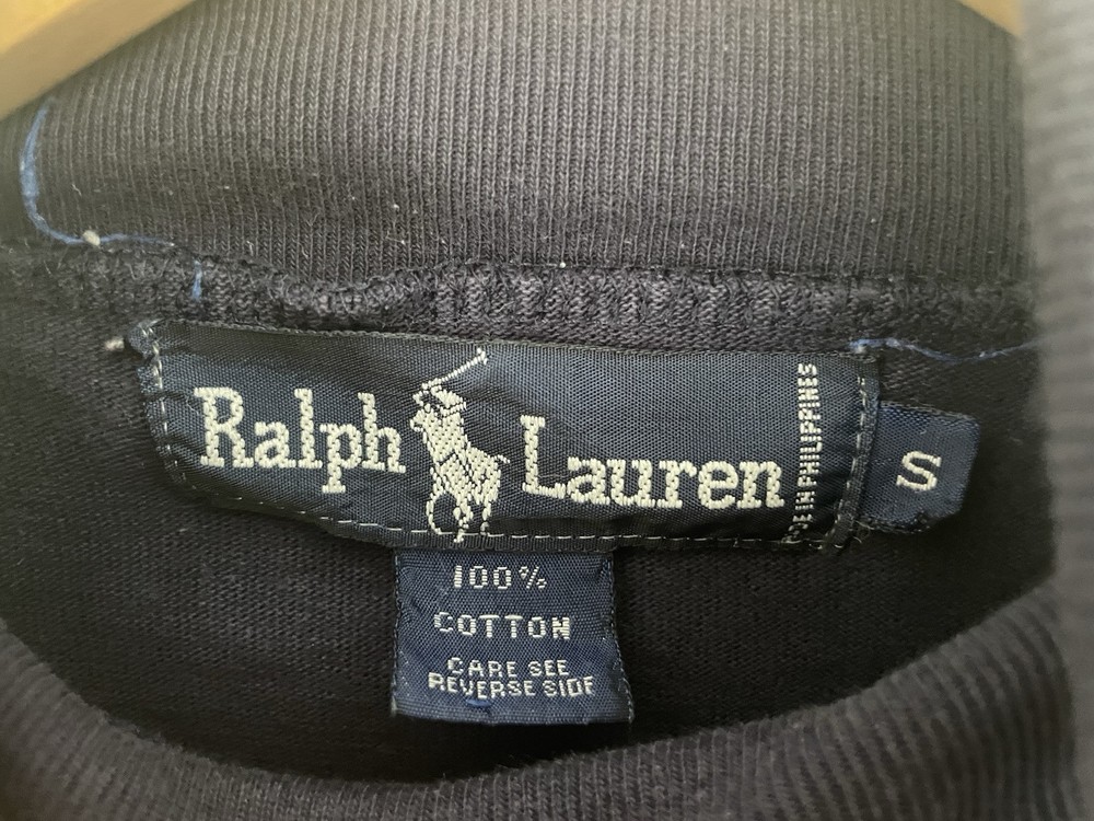 Ralph Lauren Men's Solid Navy Blue 100% Cotton Turtleneck Long Sleeve Shirt S. Condition is pre-owned. Smoke free, pet free home. Shipped via USPS Ground Advantage. In good condition. There is a small rips along the seams at the bottom of the shirt and a small stain on the front.