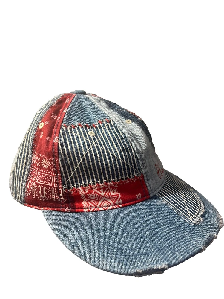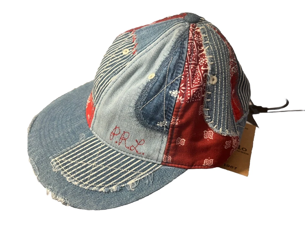This Ralph Lauren Polo Denim & Supply Patchwork Bandana Denim Baseball Cap Hat is a classic addition to any wardrobe. The multicolored cotton cap features a denim fabric type and is perfect for casual occasions. It is one size fits all and is suitable for men. The cap is not signed, personalized, or vintage. The hat is made in Cambodia and is suitable for all seasons, including winter, summer, fall, and spring. It is a unit type cap and comes in a unit quantity of one. The cap is not handmade and is not perfect for personal use. Get your hands on this stylish cap today!