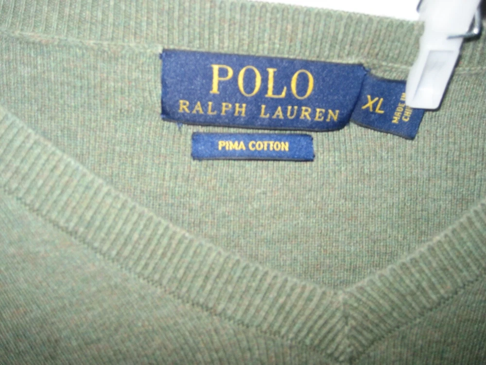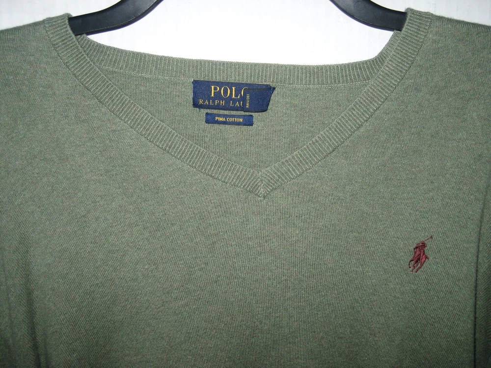 Polo by Ralph Lauren Mens V-Neck Pullover Sweater Pima Cotton XL EUC.