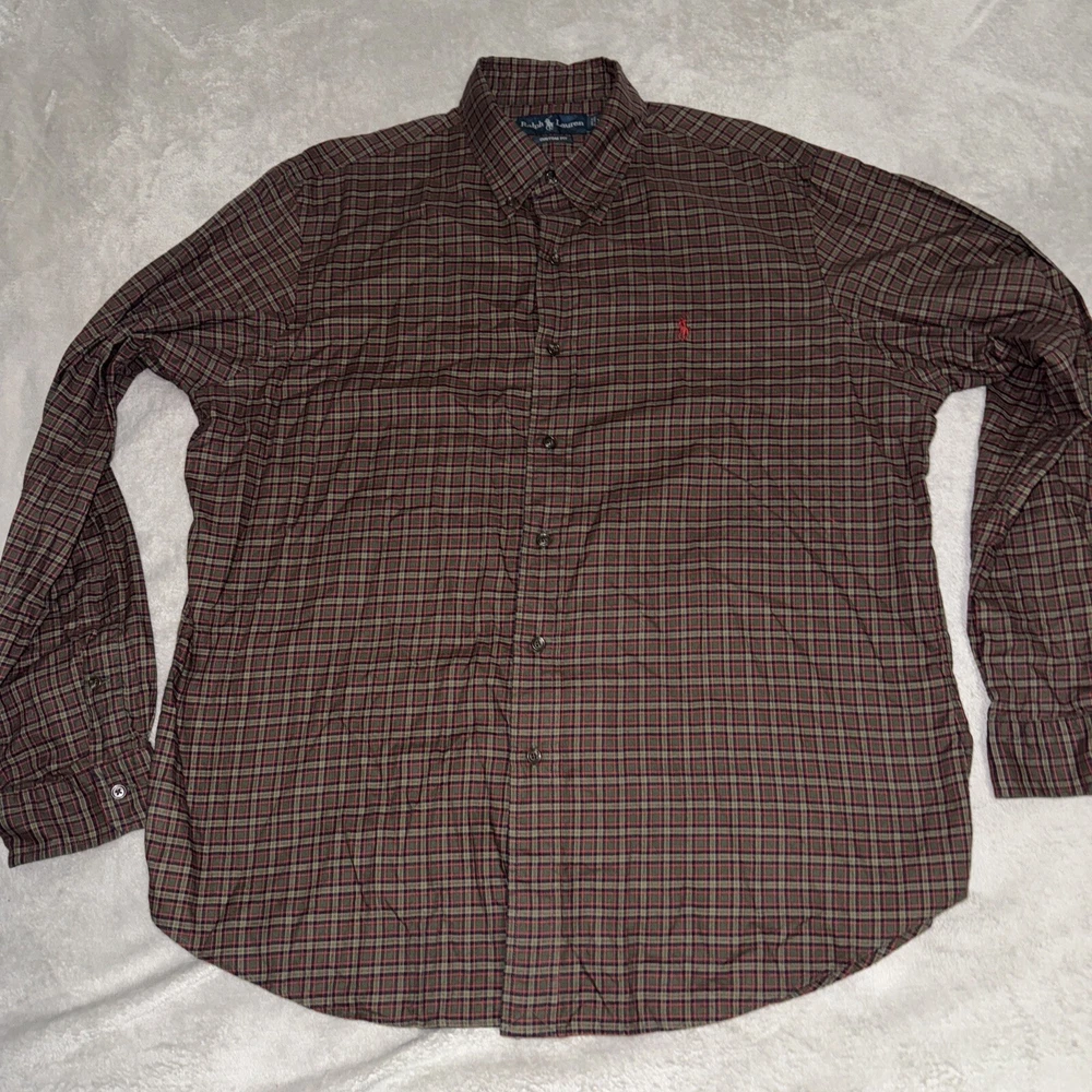 Elevate your wardrobe with this stylish Ralph Lauren shirt in size XL. The green plaid pattern and embroidered accents add a touch of preppy sophistication to this collared button-down shirt. The shirt is made of heavyweight woven cotton fabric, making it suitable for all seasons. Perfect for any occasion, whether it be travel, party/cocktail, or casual wear, this Ralph Lauren shirt is a must-have addition to your closet. The shirt features a button-down collar style and long sleeves, making it a versatile piece for any season. Machine washable for easy care.