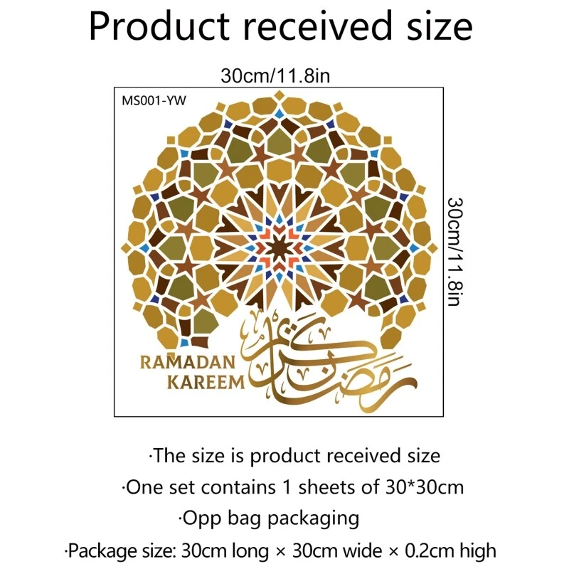 Ramadan Kareem Sticker for Creative Star Wall Art Decor 3D Decal Ornament Features: Eid Star,Ramadan Kareem words is very beautiful. Premium They are PVC material.Non environmental for Easy to DIY facilitate easier, richer color pattern. Just peel and and give your house wall a change. Suitable for:These Eid wall stickers can be directly attached to the ceramics, glass window furniture car and any flat even smooth surfaces. Decoration: DIY for your lovely and elegant Room,it will be beautiful, and love house. Specification: PVC Size: approx.30x30cm/11.81x11.81in Color: As the picture shown Quantity: 1Pc Note: Please allow 0-1cm error due to manual measurement. pls make sure you do not mind before you bid. Due to the difference between different monitors, the picture may not reflect the actual color of the item. Thank you! Package Contents: 1xEid Wall Sticker (other accessories in the picture is not included.)
