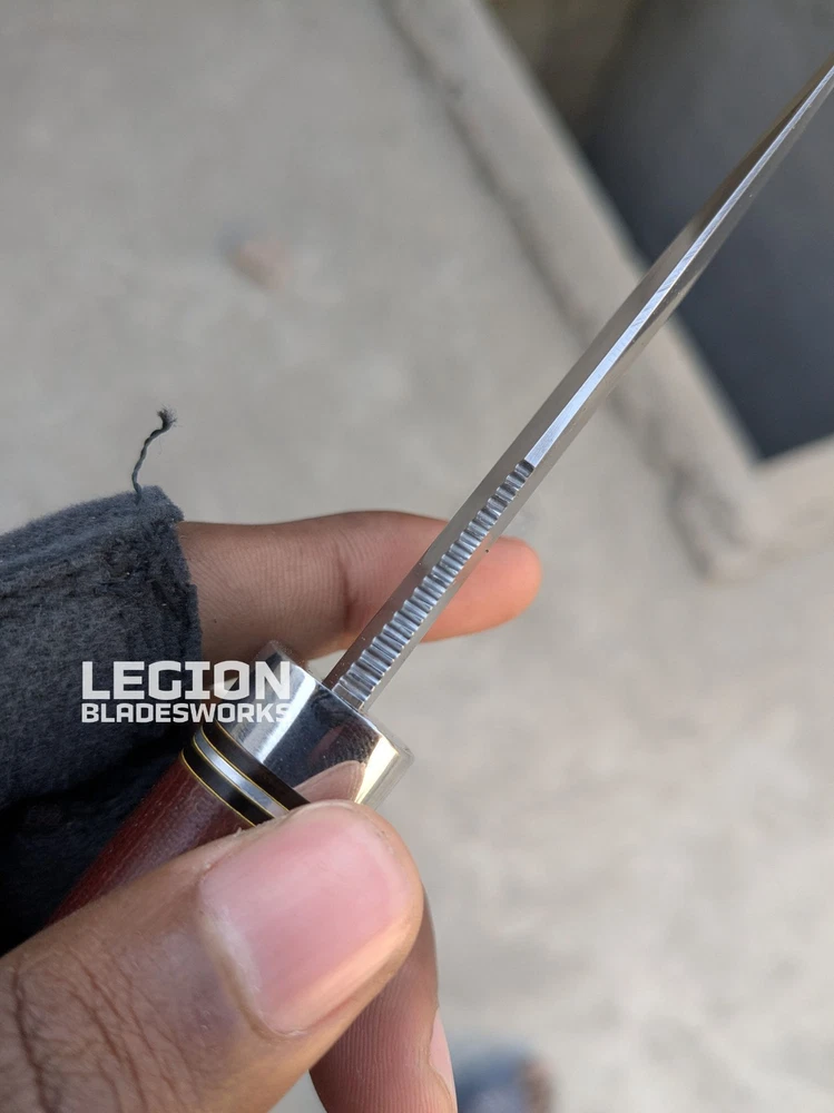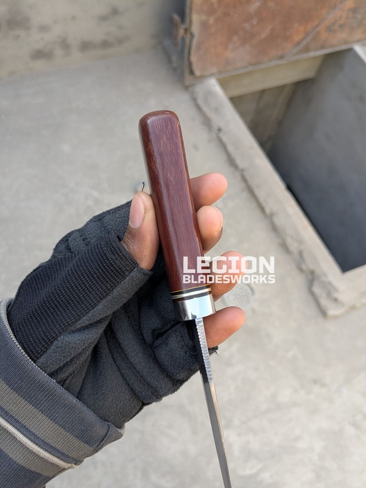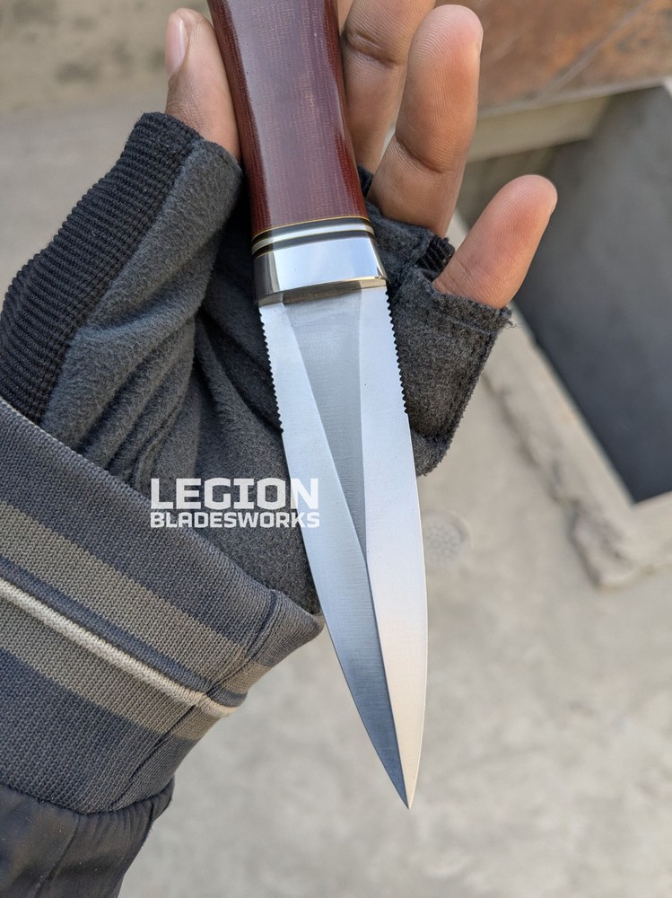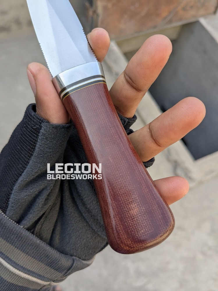 - Dimensions of this product: -- Overall Length: 7.6 Inches -- Blade Length: 3.4 Inches -- Handle Length: 4.2 Inches -- Blade Material : Stainless Steel -- Handle Material: Micarta - Package Includes: - 1 x Handmade Blade - 1 x Leather Sheath - Heavy Duty: Designed for use, not for show. These Hand Forged blades are fully functional & outperform any heavy duty tasks. These blades could be a great companion for your next survival journey.. Shatterproof to withstand high performance hunting task - Super Sharp Blade: Say goodbye to the rusty dull knife. This blade has a razor-sharp edge, exceptionally stringent to tackle a variety of stressful tasks. Predator hunting, wood cutting, military drills, all can be done smoothly in a quick hand move - Durable Quality: Premium quality blades are tarnish proof and rust resistant to serve you for years to come. A trustworthy hunting knife that ensures excellent performance in time of need, from survival to wood-cutting all can be done - Safety Cover: Our survival blades are indeed a piece of art made by a skilled knife maker. Comes with a sturdy leather sheath with integrated belt loop and snap lock to ensure safe carrying Shipping: All the orders will be dispatched within 7-10 days. Premium DHL track-able service is used to ship all the orders. We do not ship to Israel, Russian Federation & Brazil. The remote area will be charged by the buyer. For International Customers: We use DHL Express for International shipping. Customer’s can ask us about their shipping charges to their specific country. Returns: We are sure that our products will be 100% value for money because of all that effort we made to provide you the best quality, but instead of that we offer you a 14 days return policy on the sold item. We will immediately refund after receiving the parcel to its original condition. Only the knife price will be refunded & shipping has to be paid by the buyer. Custom Orders: Let us know if you are interested to modify any product or want a custom order. Then feel free to contact us. Disclaimer: We are not responsible for any misuse, injury, death or criminal act. Make sure you are about 18 years old. Note: If you have any questions, do not hesitate to talk with us. Safety Instructions: Always clean you blade with oil or wax after use Never store a blade always in your sheath Know the proper use to avoid injuries Blades are completely razor sharp, so be some careful (Expect Kris Daggers)