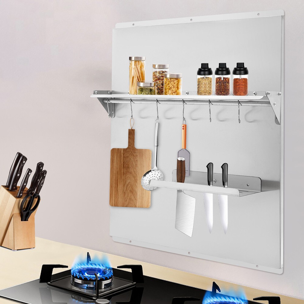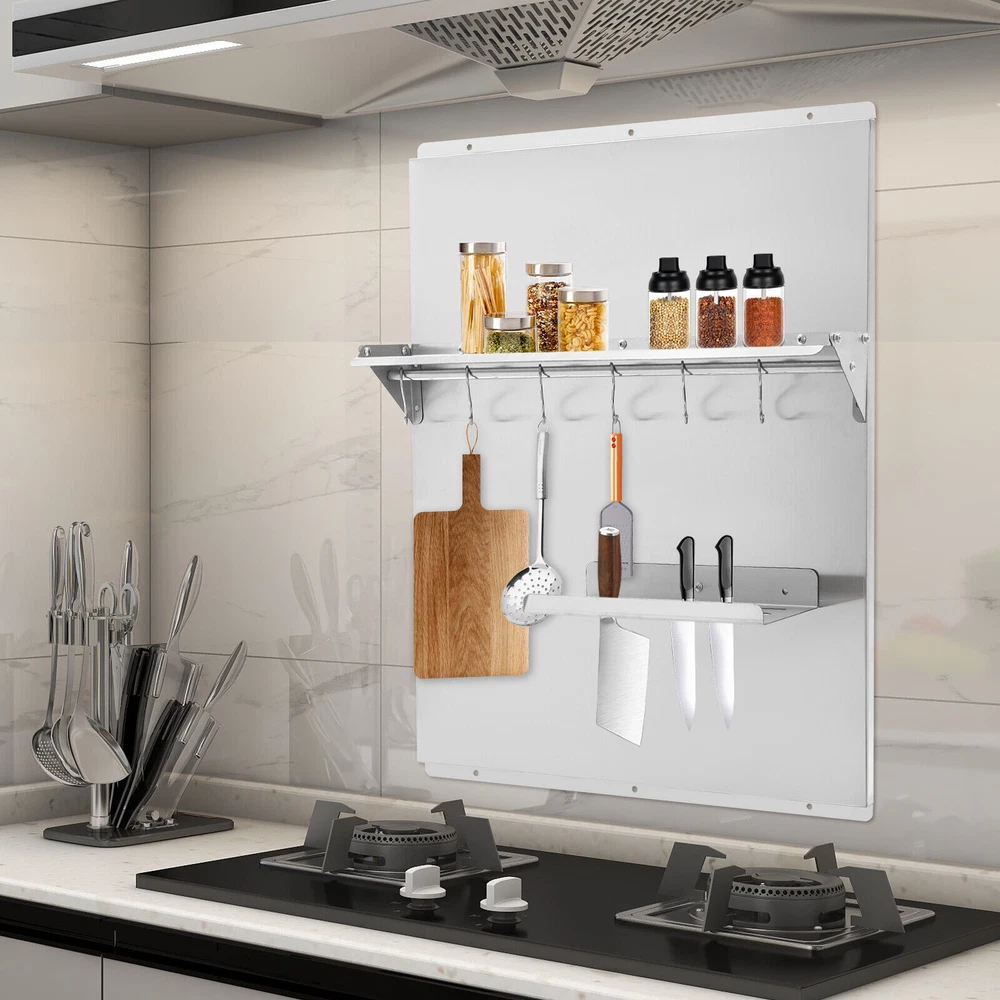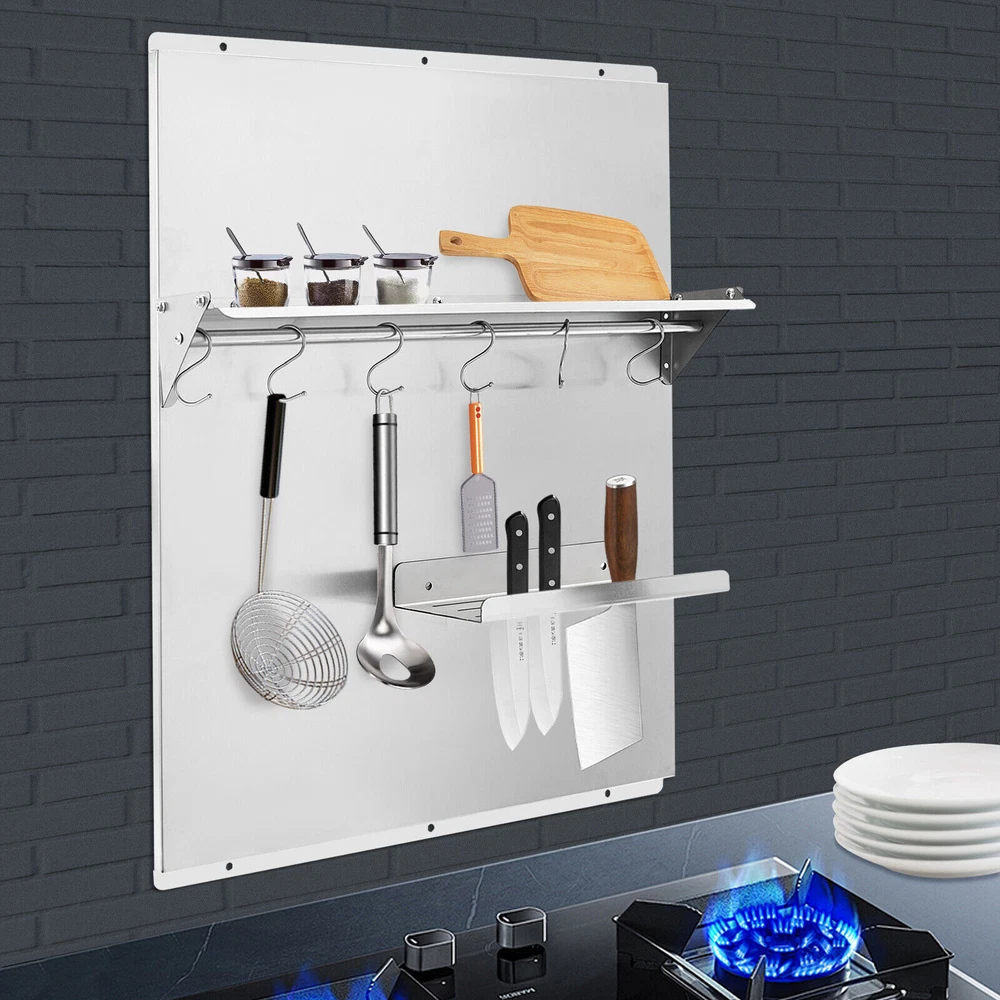 Range Backsplash Commercial Kitchen Stove Backsplash W/ Storage Shelf Wall Mount Description Are you still struggling with grease-contaminated walls in your home? Please take a look at this range backsplash from us. Our product is made of thickened material and is sturdy and durable. It is easy to install and easy to clean. It is a good blend of fashion and function, which can help you upgrade your kitchen as well as add a modern touch to your kitchen decor. Key Features Made to Last: Made from high-quality material with excellent corrosion and heat resistance, this product ensures worry-free cooking and durability. Modern Appearance: The silver exterior and simple structural design show elegance and simplicity, adding a touch of color to your kitchen decor. Effective Protection: The24.02*29.92 inch panel can effectively stop spills and splashes from contaminating your cooktop and walls, allowing you to concentrate on crafting delicious meals without the added stress of cleanup. Simple Installation: With a simple structure, complete accessories, and pre-drilled holes, you just need to screw in a few screws, and you can install it easily, saving time and energy. Thoughtful Design: It comes with a convenient storage shelf and 6 hooks. The hook can be freely moved or removed as needed. They help you place your favorite spices and essential kitchen tools to ensure easy access. Effortless Cleaning: The smooth surface and simple structure allow you to clean it with a towel or rinse the surface oil with water. Ideal Gift: With good performance and a modern appearance, it can be used as an ideal housewarming gift for parents, friends, and lovers so that they can also enjoy a more convenient life. Good Customer Service: We aim to provide quality products and services. If you have problems, please feel free to contact us. We will reply and solve the problem for you as soon as possible. Details Knife Rack: It holds kitchen knives for easy access and use without taking up extra space for you. Installation Gloves: They prevent your hands from being scratched during the installation process and ensure a safe installation. Application This product is suitable for installation in a home or commercial kitchen. Specification Shape: Rectangle Color: Silver Style: Modern Assembly Required: Yes Mounting Type: Wall Mount Product Size: 61*76cm/24.02*29.92in Package Size: 80*66*8cm/31.5*25.98*3.15in Gross Weight: 4.3kg/9.48lbs Net Weight: 4kg/8.82lbs Package Included 1* Range Backsplash 1 Pair* Gloves Other Accessories for Assembly Notes Please check the size carefully before ordering. Please allow the slight color difference caused by the shooting light and 1-3cm error due to manual measurement, and make sure you do not mind before ordering. Payment Delivery details Terms of sales About us Contact us Payment We accept ebay payment 。 Fees such as import duties, taxes are not included in the item price or shipping costs. These charges are the buyer's responsibility. Delivery details Shipping: 2-9 working days to: USA Terms of sales We maintain high standards of excellence and strive for hundred percent customer satisfaction. Feedback is very important to us. We hope that you contact us immediately before you give neutral or negative feedback, so that we can address your concerns. It is impossible to address issues if we do not know about them! About us Your satis faction is our ultimate goal. We work hard to earn your trust and future business. Our certified technicians have tested each item before shipping. The unit comes with 1 year limited warranty on all manufacturing defects. a) If you receive a defective item, you may return it or ask for a discount. Please contact us within 14 days after you receive the package. b) What you returned must be intact and in its original packaging as re? u. Customer is responsible for shipping costs of the returned item. c) We will cover the cost of shipping back t with the shipping rate indicated in the registration page. We will send you a new unit or refund the full payment you paid. Thank you. Contact us Business Hour Business Hour: Monday To Friday: 8:30 AM to 5:00 PM (Beijing China time) Due to time zones, our reply to your questions may not be immediately. But within above working time, we will reply your email within 24 hours. If it's non-workdays, please kindly be patient and wait till Monday. Please contact us with ebay message. Please feel free to contact us if you have any questions. Monday To Friday: 8:30 AM to 5:00 PM (Beijing China time) Due to time zones, our reply to your questions may not be immediately. But within above working time, we will reply your email within 24 hours. If it's non-workdays, please kindly be patient and wait till Monday. Please contact us with ebay message. Please feel free to contact us if you have any questions. On Feb 23, 2026 at 19:39:52 PST, seller added the following information:
