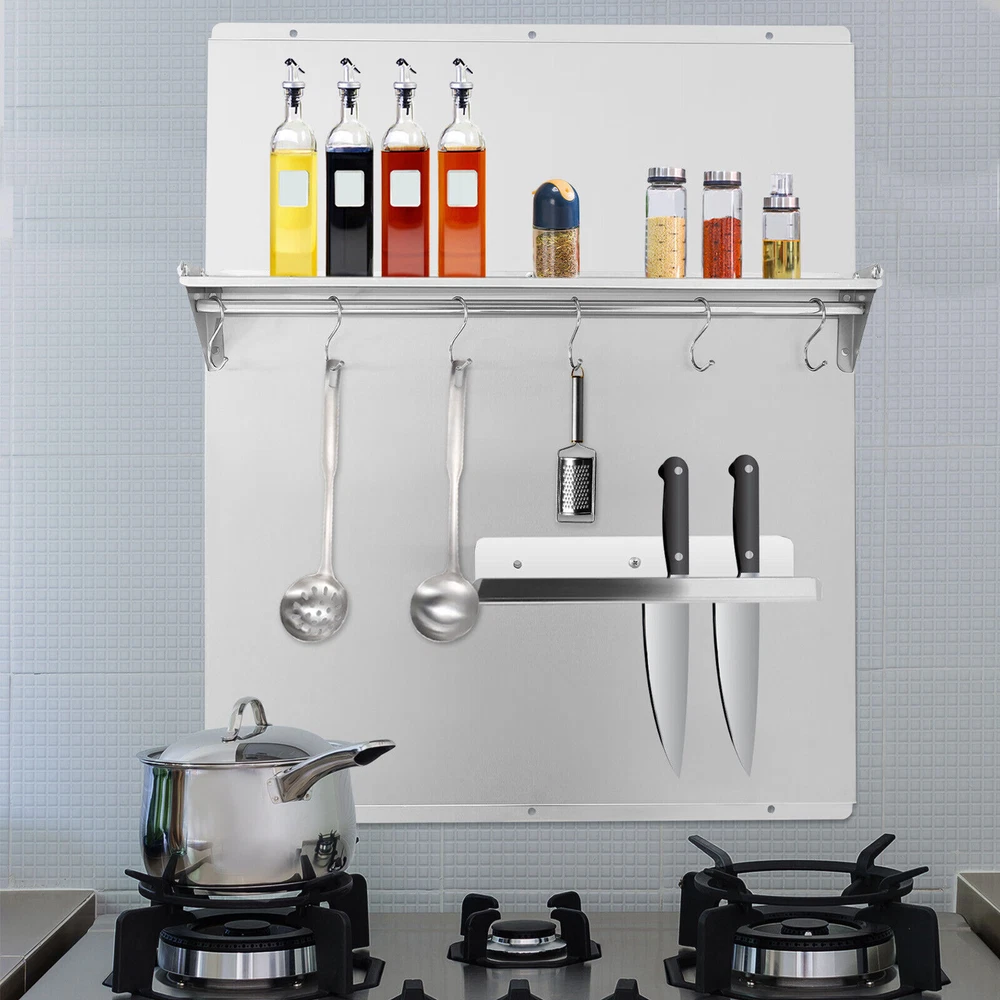 Range Backsplash with Shelf Silver Stainless Steel Backsplash for Range Hood