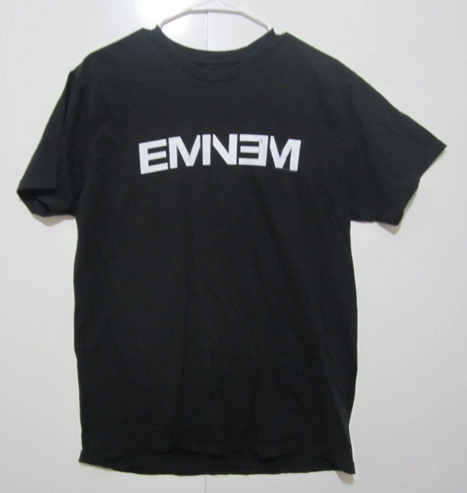This black graphic t-shirt featuring the official logo of Eminem is a must-have for fans of the rap and hip hop artist. Made of cotton with a crew neck and short sleeves, the shirt is designed for a regular fit in size L. The slimming graphic tee is machine washable and suitable for all seasons, making it a versatile addition to any streetwear or music-inspired wardrobe. Perfect for both men and women, this Eminem t-shirt is a stylish and comfortable choice for expressing your love for his music. Pre-Owned. Please reach out to me regarding any questions you may have on this item. Also, check out my inventory as I am always adding new items. Thank you for your support!