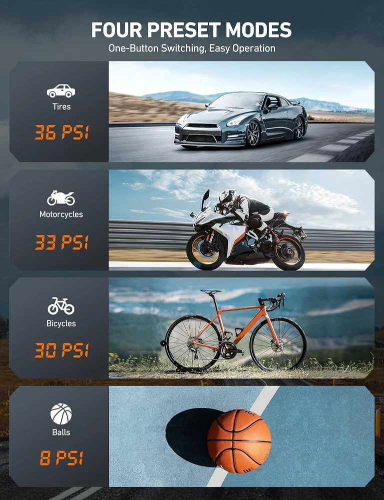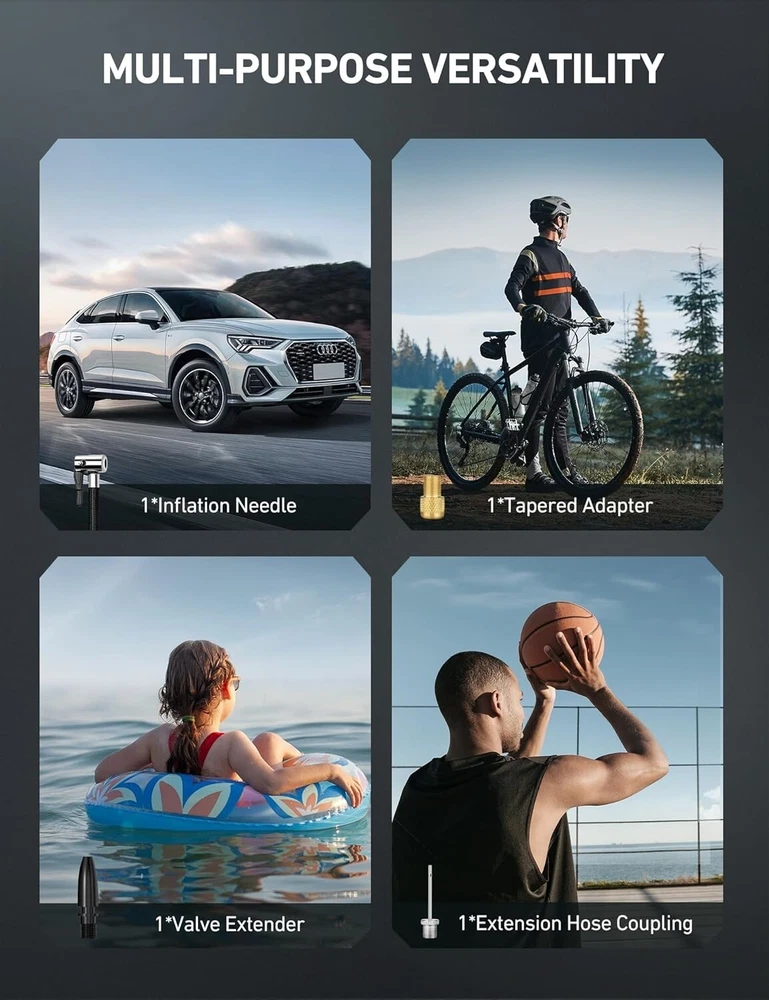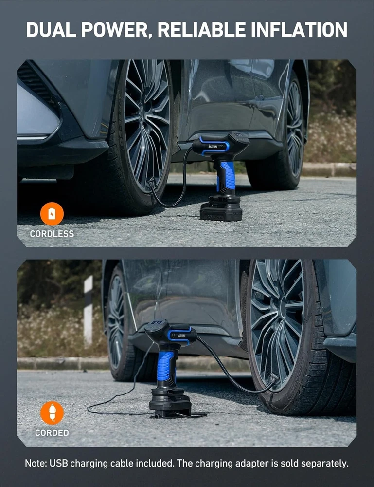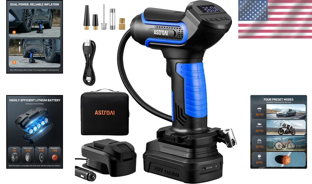 Rapid Inflator with LCD Screen & LED Light - 150 PSI Tire Pump for All Vehicles ‹ › ‹ › ‹ › ‹ › ‹ › ‹ › ‹ › ‹ › ‹ › ‹ › Rapid Inflator with LCD Screen & LED Light -150 PSI Tire Pump for All Vehicles Features: 4+N Smart Modes: Preset inflation modes for bicycle (30 PSI), motorcycle (33 PSI), car (36 PSI), and ball (8 PSI), along with a manual mode for custom pressure settings up to 150 PSI. Dual Power Supply: Alternating between cord and cordless inflation options using a 20 V lithium battery or DC 12 V power, offering convenience on the go. Fast Inflation: Fully inflate a 195/65/R15 tire in less than 5 minutes with continuous operation of up to 15 minutes. Auto Shutoff & LCD Screen: Intelligent safety design that shuts off automatically upon reaching the desired pressure, with real-time pressure display on a clear LCD screen. Ultra-Bright LED Light: Provides illumination when inflating tires in the dark, with an individual power button for ease of use. Benefits: Time-saving with preset modes suitable for varying vehicle types. Robust dual power options ensure inflation is hassle-free. Quick inflation speeds up roadside assistance and travel readiness. Auto shutoff feature maximizes safety and pressure regulation. Illuminates your workspace, enhancing functionality in low-light conditions. Why choose our Rapid Inflator? Experience the convenience and efficiency of the Rapid Inflator with LCD Screen & LED Light, the perfect companion for every vehicle owner. With its 4+N smart modes, rapid inflation capacity, and intelligent auto shutoff feature, you can ensure perfect tire pressure every time, all while enjoying the ease of operation. Whether you’re on a road trip or at home, this tire pump reliably meets all your inflation needs. Be prepared for any situation. Elevate your driving safety and comfort by investing in the ultimate tire inflator. Don’t wait – secure your Rapid Inflator today! Shipping Free & Fast Shipping - We offer free shipping to most of the USA with a normal delivery time of 3-7 days. However, due to the current situation, additional delivery time (up to 3 weeks) may be required for some items. Alternative Carriers - We may use alternative carriers (e.g. USPS, FedEx, UPS, etc.) to ensure your package arrives safely and on time. Due to the use of multiple carriers, we are unable to provide a tracking number automatically. Handling Time - Orders are processed and shipped within 1-2 business days of receiving cleared payment. Shipping Restrictions - Shipping to Alaska, Hawaii, Puerto Rico, Guam, and other US territories may incur shipping charges or delivery restrictions. Please contact us before ordering, or your order can be refunded/cancelled. State Restrictions - There may be restrictions based on your state of purchase. For example, certain items may not be shipped to California due to state regulations. Contact for Tracking Updates - If you require tracking updates or have any concerns about the delivery of your order, please feel free to contact us, and we will be happy to assist you. Return 30-Day Hassle-Free Returns - We want you to be completely satisfied with your purchase. If you are not, you can return the item within 30 days of receiving it for a full refund or exchange. Easy Return Process - To start a return, simply contact us and we will provide you with a prepaid return shipping label and detailed instructions. Restocking Fee - There are no restocking fees for returns. However, the buyer is responsible for return shipping costs if the return is not due to a seller's error. Refund Processing Time - Refunds will be processed within 5 business days of receiving the returned item in its original condition. Payment We accept all major credit cards, PayPal, and Apple Pay for your convenience. Your payment information is secure and encrypted to ensure a safe and seamless transaction. Please complete your payment within 3 days of purchase to avoid any delays in shipping. Feedback Your feedback is extremely important to us. We strive to provide the best products and customer service possible. If you are satisfied with your purchase, please take a moment to leave us a positive review. If you have any concerns or issues with your order, please contact us before leaving negative feedback. We are committed to resolving any problems and ensuring your satisfaction. Contact Us If you have any questions or concerns, please feel free to reach out to our customer support team. You can contact us through the eBay messaging system. We are available Monday to Friday, 9:00 am to 5:00 pm EST, and we will do our best to respond to your inquiry within 24 hours. Thank you for supporting our small family business! UPC: Not Set Model: Cordless Tire Inflator Item Width: Cordless Tire Inflator Item Length: Cordless Tire Inflator Item Height: Cordless Tire Inflator Item Diameter: Not Set Item Weight: 4.25 pounds Unit Quantity: 1 Set Includes: Manual Drain Valve,astroai 12v air compressor,user manual,inflation needle,tapered adapter,valve extender,replacement fuse,storage bag Brand: Unbranded Type: Piston Compressor Portability: Portable Voltage: 20 V Power Source: Corded Electric Maximum Working Pressure: 150 Psi Tank Capacity: Not Set Lubrication Type: Oil-Free Horse Power: 0.13 hp Tank Material: Not Set Flow Rate: Not Set MPN: Not Set Color: Blue Country/Region of Manufacture: Not Set Manufacturer Warranty: Not Set Unit Type: lb
