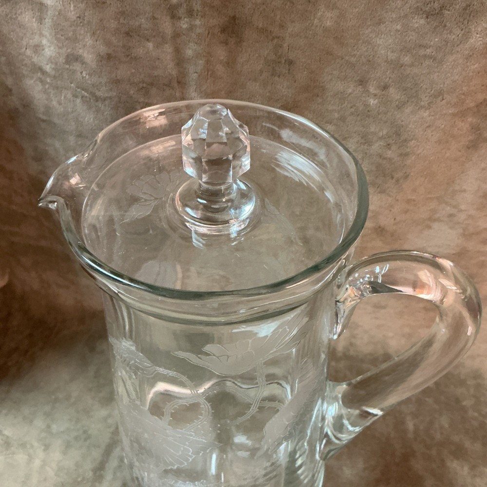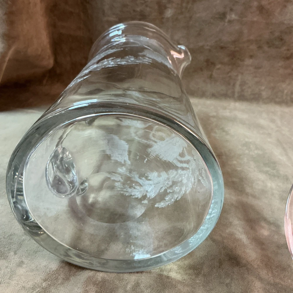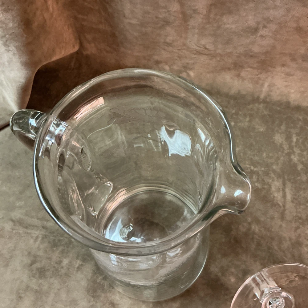 $ 26.4Glass Bedside Water Pitcher Carafe Tumble Up with Applied Handle & Cup 7.5” T