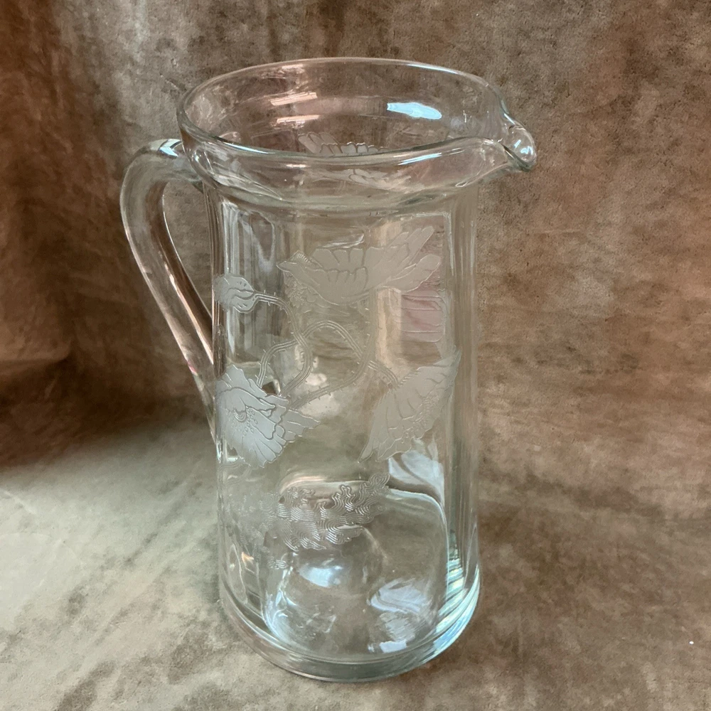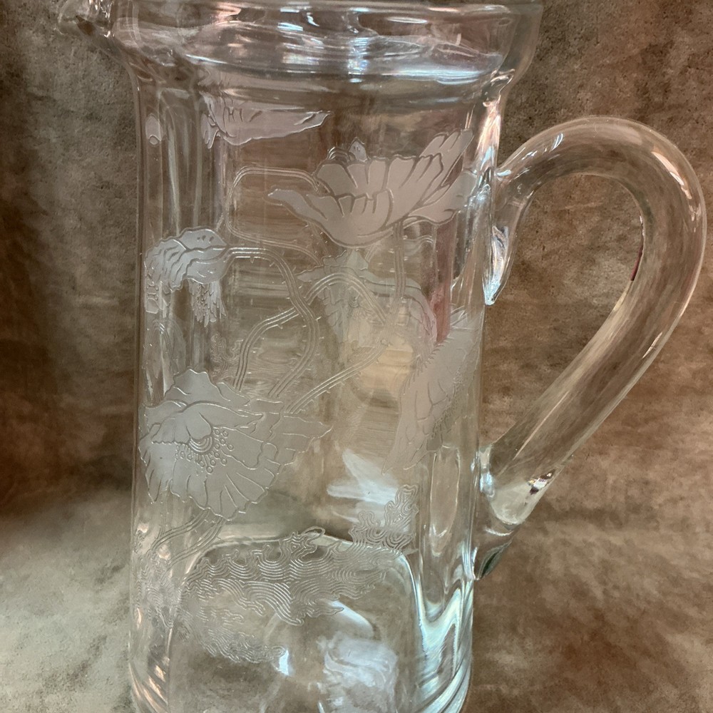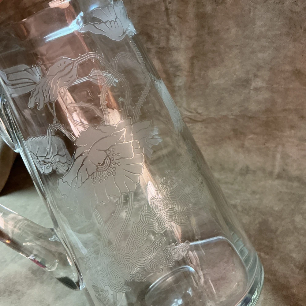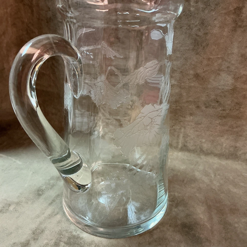 $ 26.4Glass Bedside Water Pitcher Carafe Tumble Up with Applied Handle & Cup 7.5” T