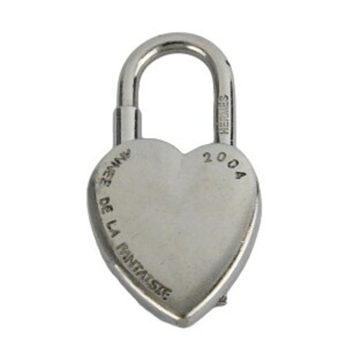 Rare 2004 Hermes Fantasy Heart Key Charm Padlock Keychain Silver Metal Cadena
