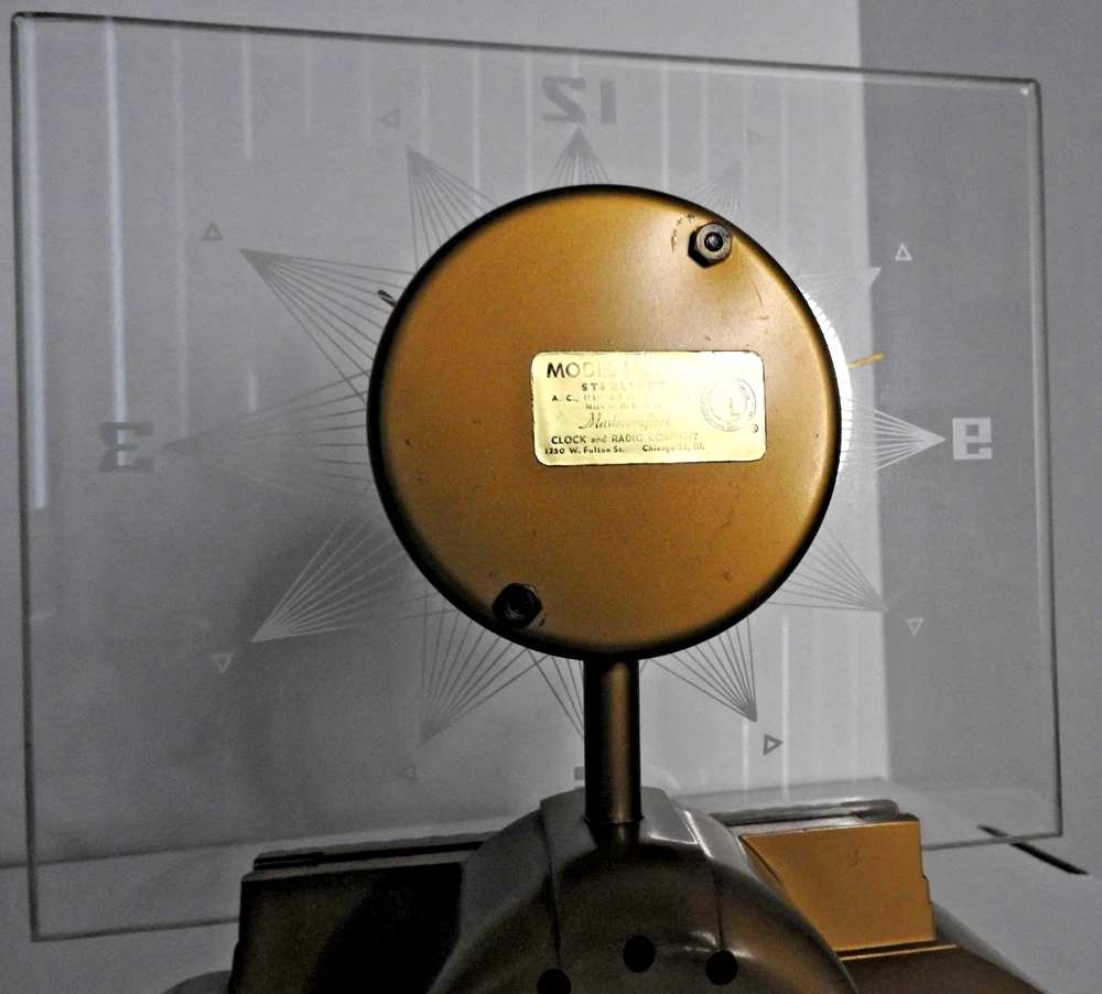 Here we have up for sale an ORIGINAL 1950's MasterCrafters Atomic Eternalight Desk Clock. Clock runs well with its original cord. Light switch works as it should also. Looks really cool when lit. Measures 8 1/2" x 8 1/2". Glass is perfect. Base is nice too but does have a couple of minor paint chips. Clock is in VERY GOOD+ overall condition and ships for FREE. Thanks for viewing.....Triple K