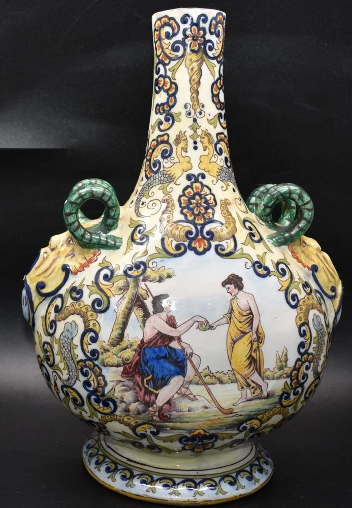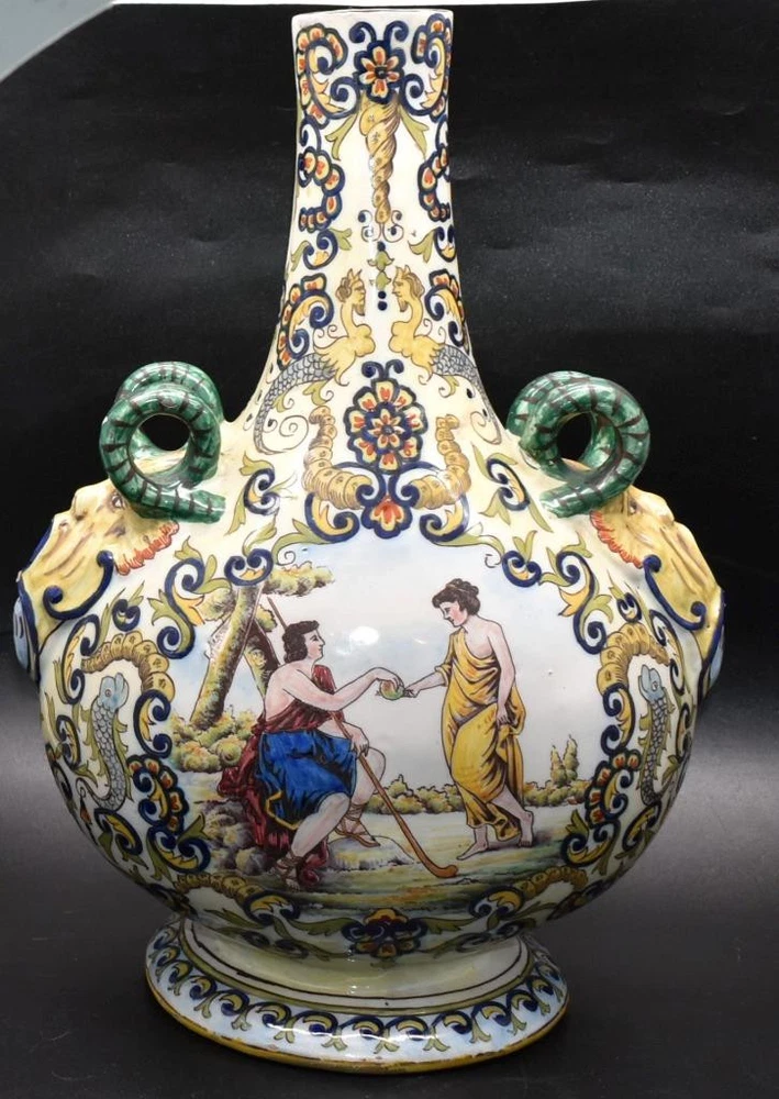Rare Antique Desvres Gabriel Fourmaintraux Faience Vase - Gien Style Rare Antique Desvres Gabriel Fourmaintraux Faience Vase - Gien Style Click images to enlarge Description PART OF THE EXCELLENT PORCELAIN COLLECTION LISTED : ANTIQUE FAIENCE VASE Our opinion Antique - See mark . Marked to the underside for Gabriel Fourmaintraux Wonderful hand painted decoration all over . Circa 1900 It is approx. 13 inches / 330 mm tall. In the antique condition shown . All as per photos . Please take time to study photos - they give an accurate insight into condition and quality. Any questions - please just ask. We will combine. We are constantly sourcing collections and single items and try to have "something for any and everyone. If you purchase this item you can pay for your purchase through eBay payments We accept cheques and will despatch once cleared. When your payment clears we'll send out the item within 2 to 4 days. All of our items are enclosed safely in professional packaging materials to ensure your item is safely protected. We know how difficult it is to buy items at a distance without actually handling them or touching them. We want you to be confident about buying from us so please see our feedback from other customers before bidding. We try to list the items as accurately as possible. We will back this up with accurate photography.We inspect each and every item carefully and describe accurately expressing opinion on age & condition.. If you are happy with our service then please leave feedback for us on ebay. If you are unhappy in any way please let us know first so that we can sort any issues out with you. Thank you Images sell! Get Supersized Images & Free Image Hosting Create your brand with Auctiva's Customizable Templates. Attention Sellers - Get Templates Image Hosting, Scheduling at Auctiva.com. Track Page Views With Auctiva's Counter