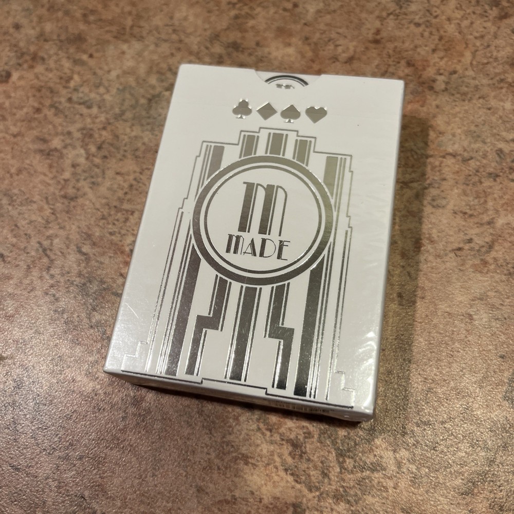 Introducing a rare find for playing card collectors - the Bicycle Silver Brand New Sealed Playing Cards. This deck features the iconic and collectible design of M Made, adding a unique touch to your card collection. The deck is brand new and sealed, ensuring the cards are in pristine condition for your enjoyment. Perfect for collectors or anyone looking for a special gift, these playing cards are a must-have addition to your collection. The deck is made by Bicycle, a trusted name in playing cards, and features a beautiful silver design that is sure to impress. Get your hands on this rare deck today and add a touch of elegance to your card games.