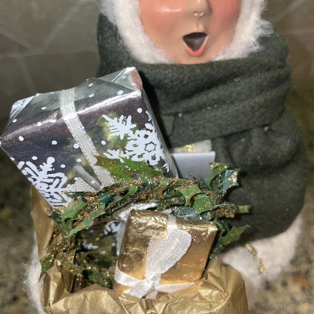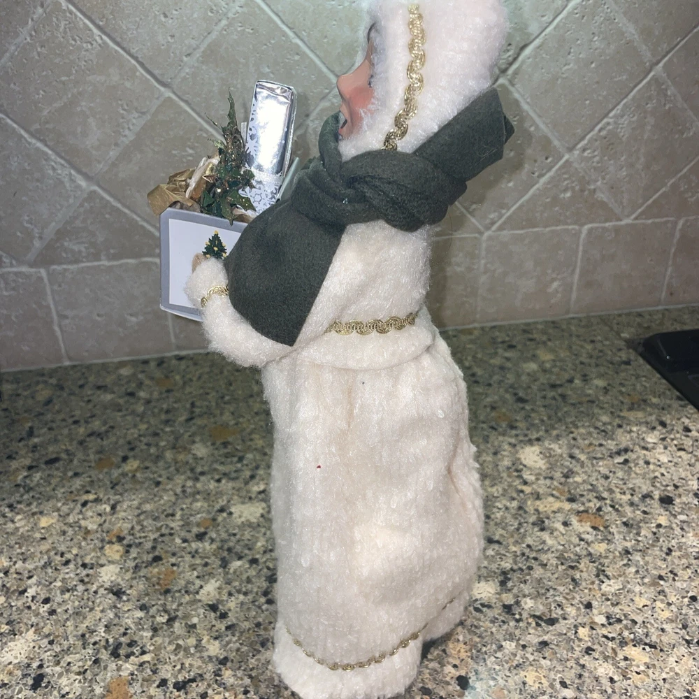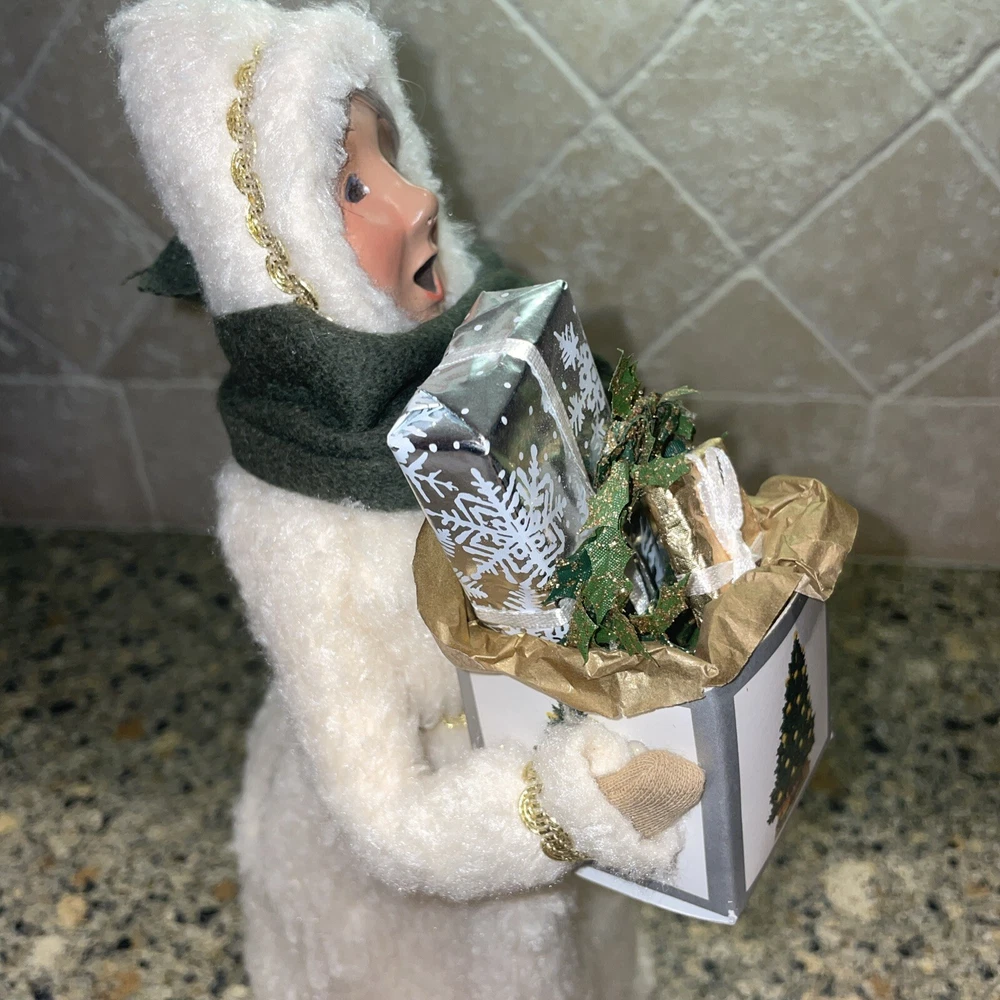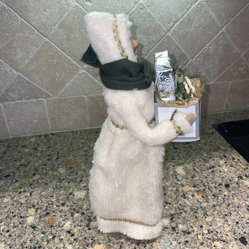 Absolutely stunning!! Rare and Vintage Buyers Choice Christmas Holiday Caroler. This is a Woman Caroler holding a box of gifts and a small wreath. She has an off white fur dress on trimmed in gold with a green scarf. She is approximately 13” tall. Made exclusively for Talbots in 2002. There are no chips on the base and has been taken care of with love by one owner. She is in wonderful shape. Please zoom in and see all photos. I will be listing others from the same estate. Happy to combine shipping. All from a beautiful non smoking estate in Florida.