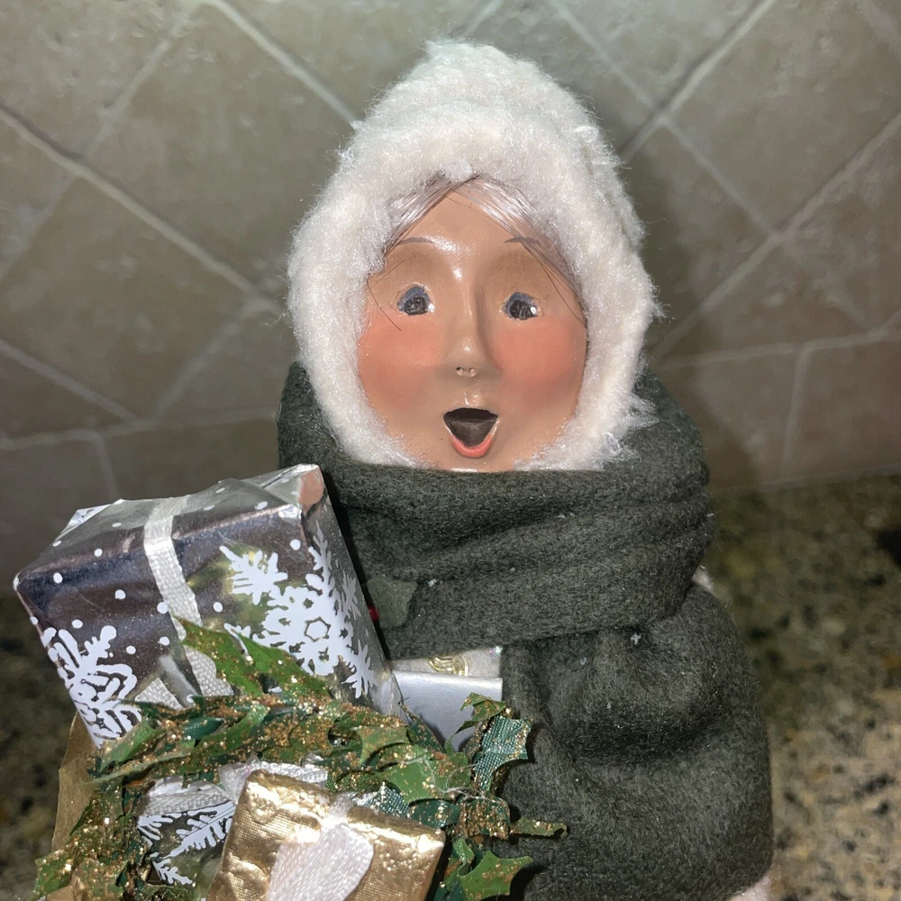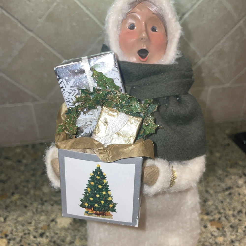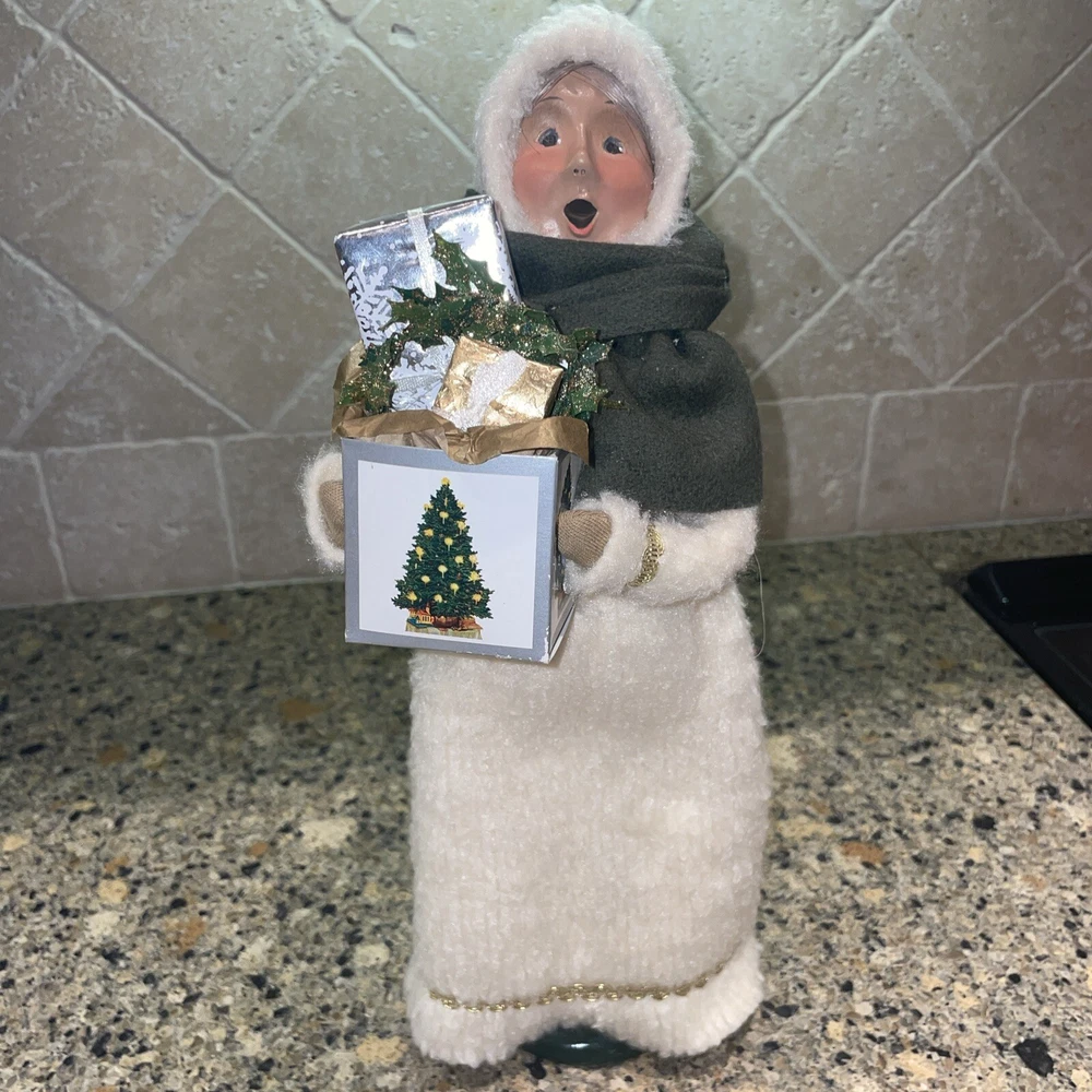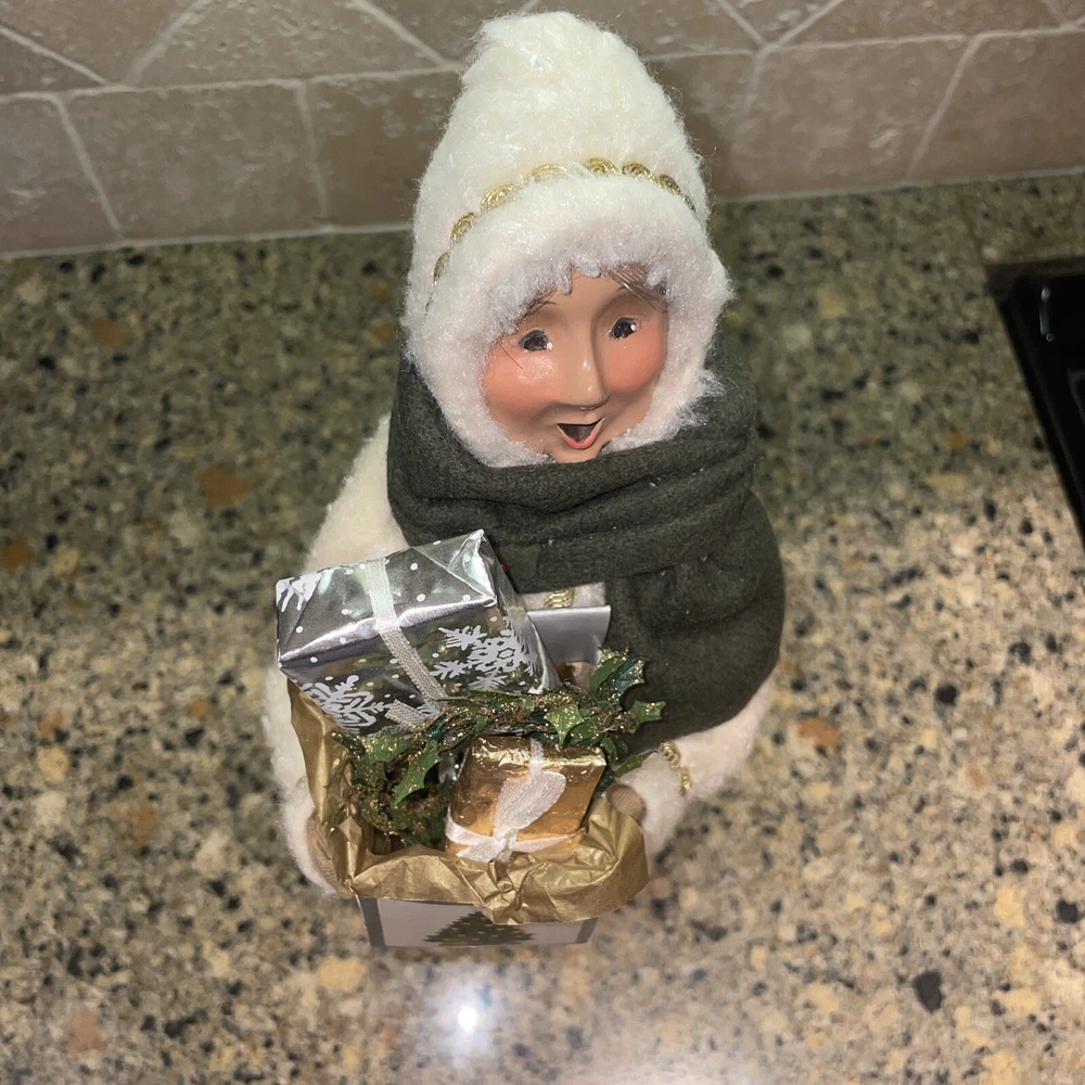 Absolutely stunning!! Rare and Vintage Buyers Choice Christmas Holiday Caroler. This is a Woman Caroler holding a box of gifts and a small wreath. She has an off white fur dress on trimmed in gold with a green scarf. She is approximately 13” tall. Made exclusively for Talbots in 2002. There are no chips on the base and has been taken care of with love by one owner. She is in wonderful shape. Please zoom in and see all photos. I will be listing others from the same estate. Happy to combine shipping. All from a beautiful non smoking estate in Florida.