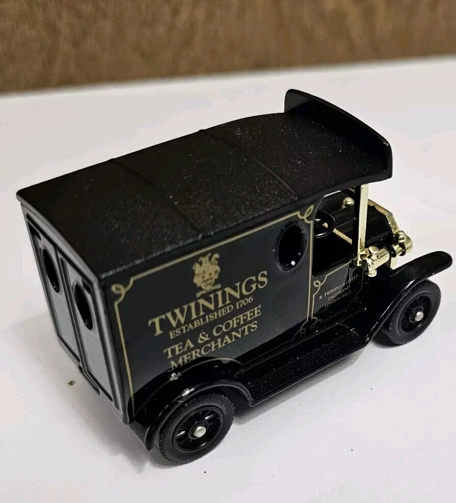 This is a collectible CORGI Minicar depicting a Ford Model T in black color. The details on this diecast toy car are remarkable, and it is a must-have for any vintage vehicle enthusiast. The brand name of this item is Corgi, and it is a perfect addition to any diecast car collection. The model is inspired by the famous Twinings Black Tea company and features their logo on the side of the car. It is a vintage manufacture, making it all the more unique and collectible. This item is perfect for display purposes and will undoubtedly be the centerpiece of any collection. Get your hands on this rare CORGI Minicar now! Has some wear/scratches as shown.