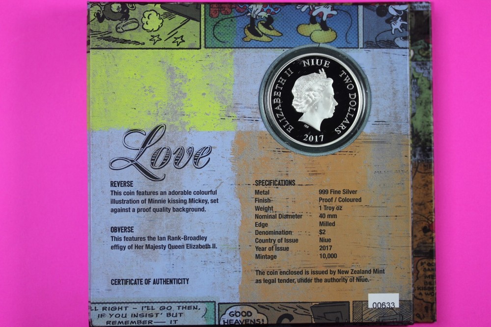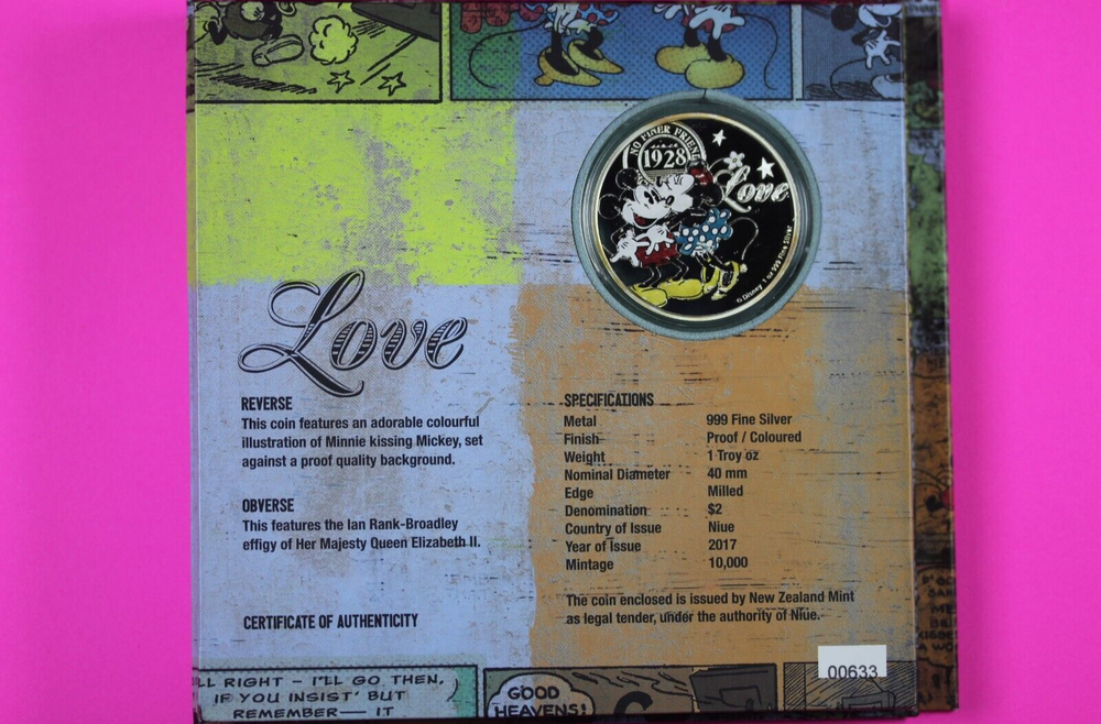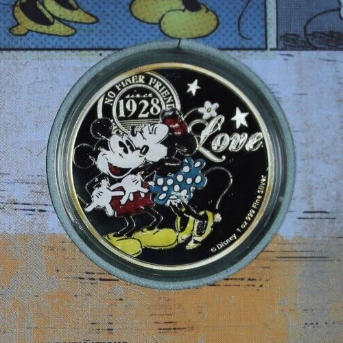 Rare Disney Mickey & Minnie 1 oz .999 Silver Coin Niue COA Box 7019