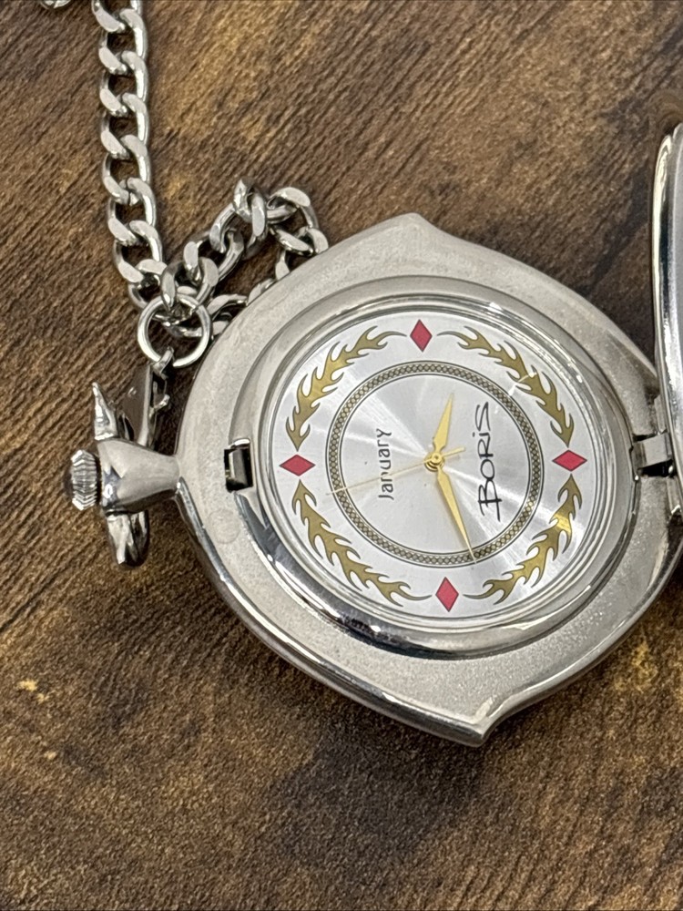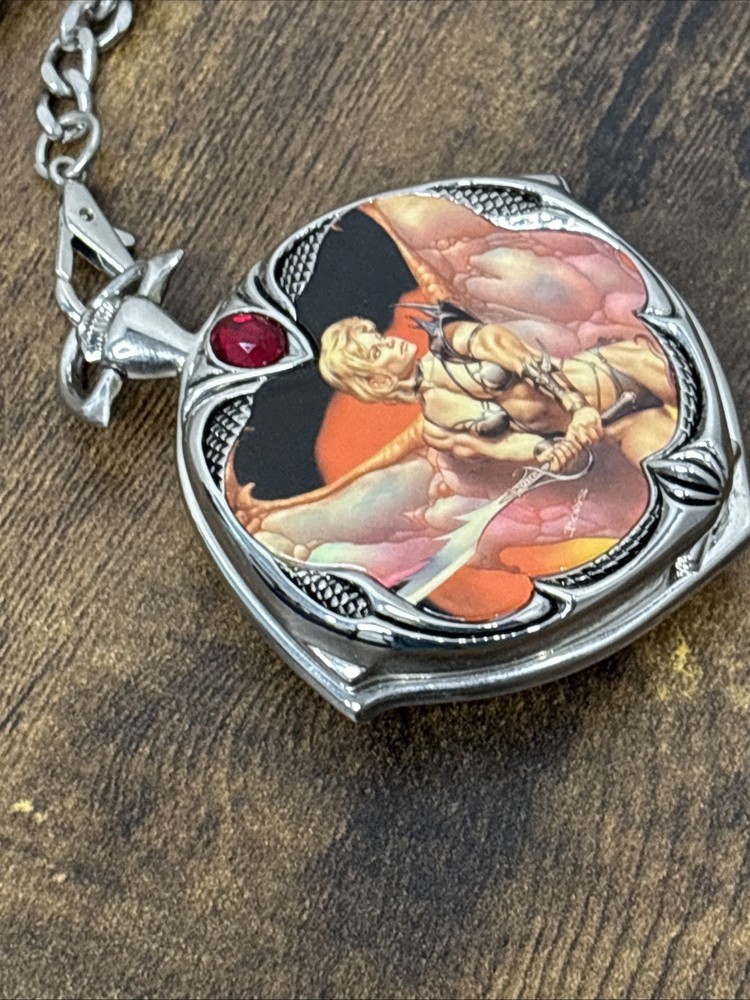 The Rare Franklin Mint Boris Vallejo January Calendar Girl Knightstone Pocket Watch is a unique and collectible timepiece designed by renowned brand Franklin Mint. This pocket watch features a beautiful design with a calendar girl for the month of January, making it a special and valuable accessory for any watch enthusiast. The quartz movement ensures accurate timekeeping, while the 12-hour dial adds a touch of sophistication to this charming piece. Its compact size makes it easy to carry and ideal for those who appreciate exquisite craftsmanship and attention to detail.