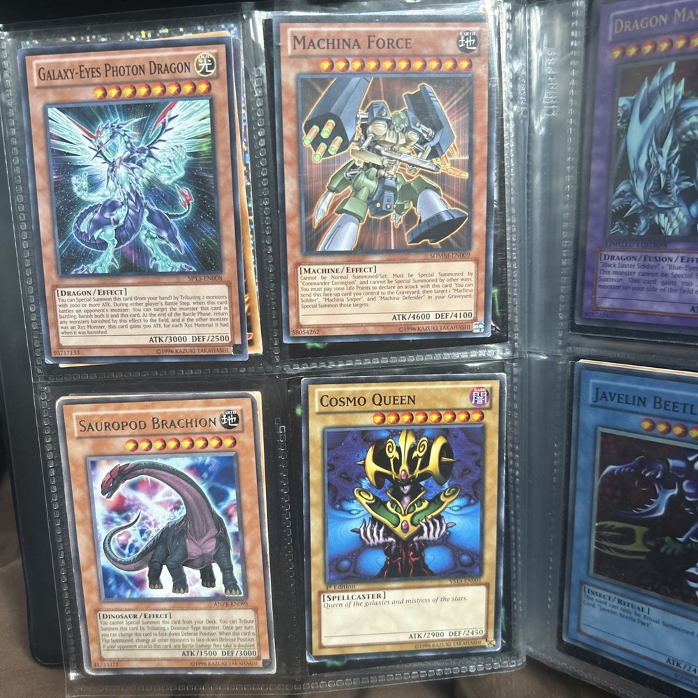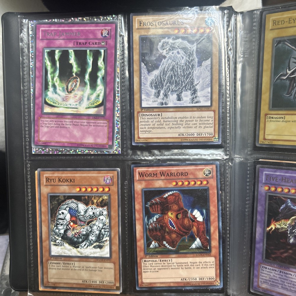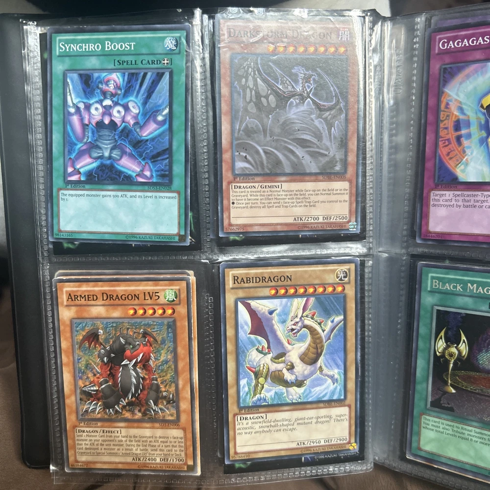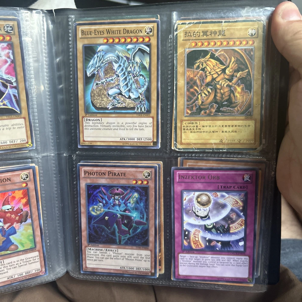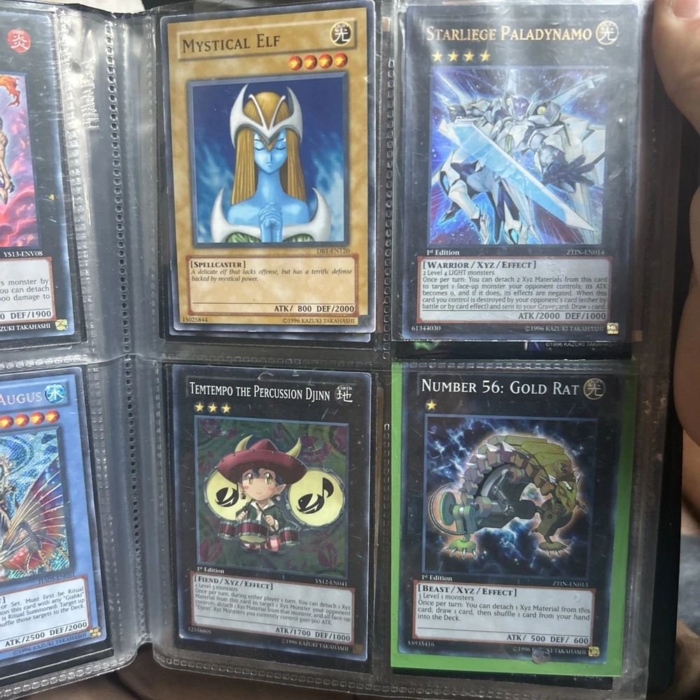 This product is a vintage binder full of Yu-Gi-Oh! trading cards from the Yugi set, manufactured by Konami in 1996. The cards are standard size, made of card stock with a holo finish, and are in English. It is a collection of collectible cards for the Yu-Gi-Oh! TCG, ideal for fans and collectors looking to expand their card collection with classic cards from the early years of the game.