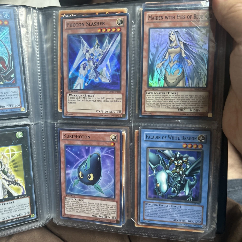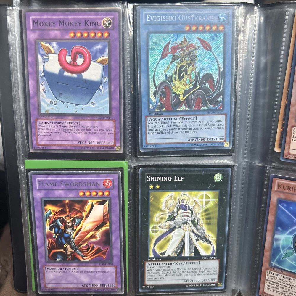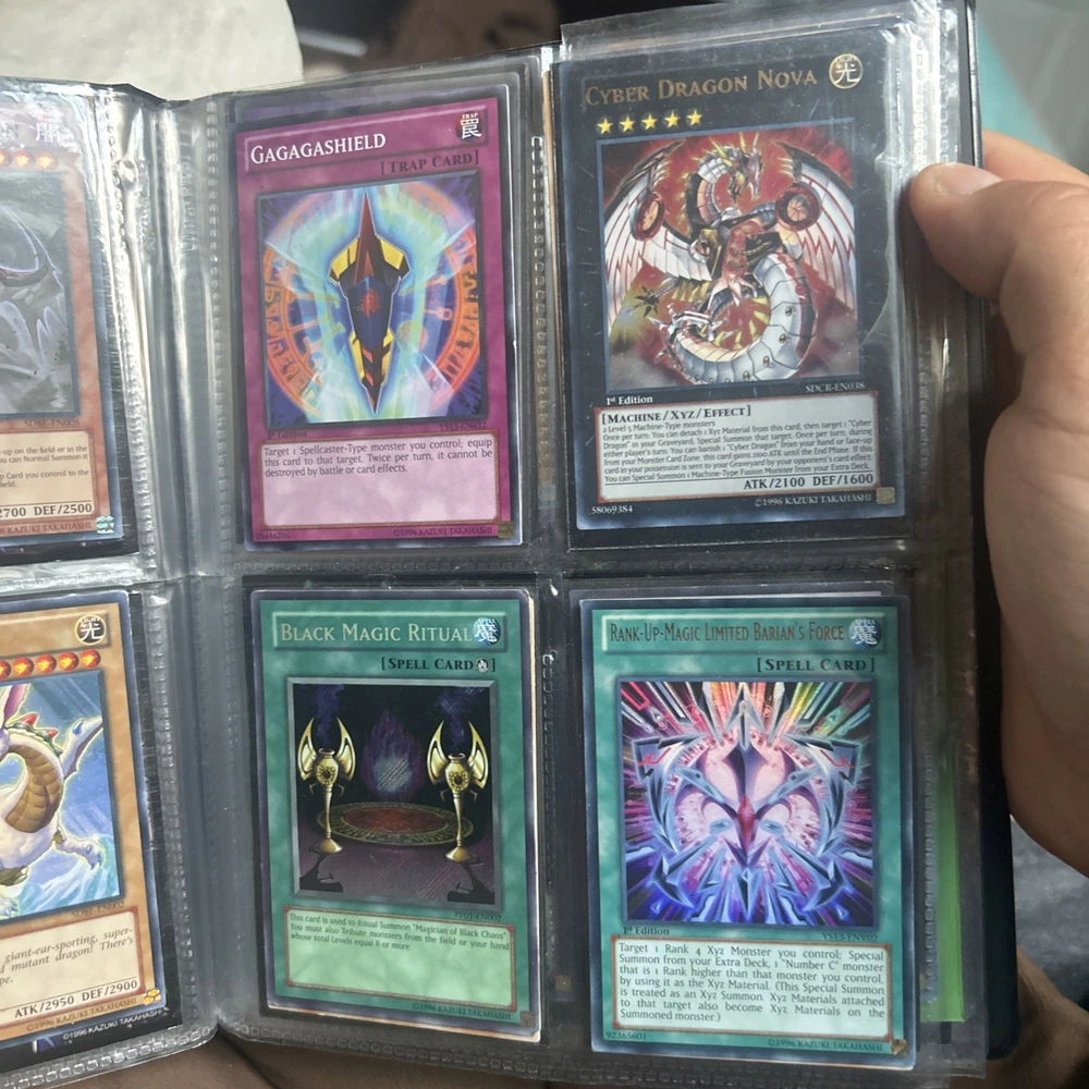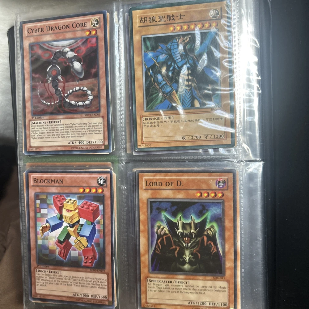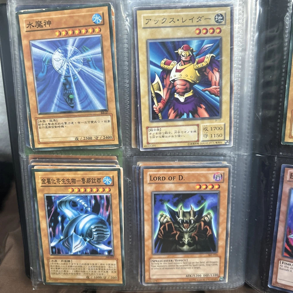 This product is a vintage binder full of Yu-Gi-Oh! trading cards from the Yugi set, manufactured by Konami in 1996. The cards are standard size, made of card stock with a holo finish, and are in English. It is a collection of collectible cards for the Yu-Gi-Oh! TCG, ideal for fans and collectors looking to expand their card collection with classic cards from the early years of the game.