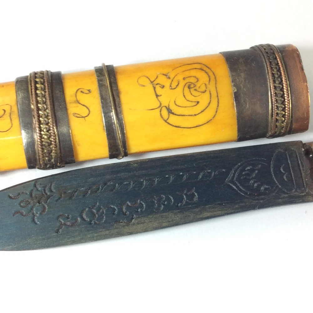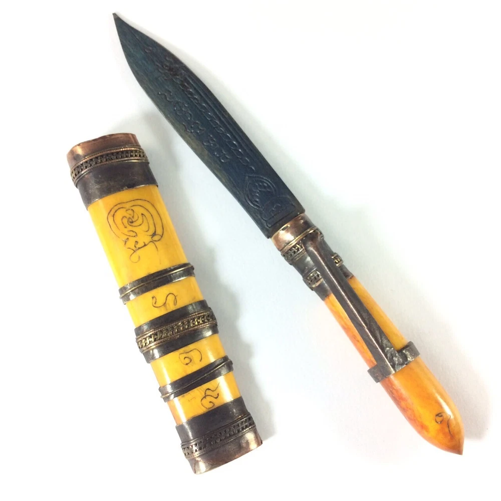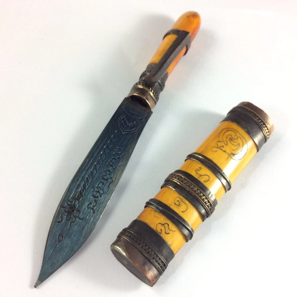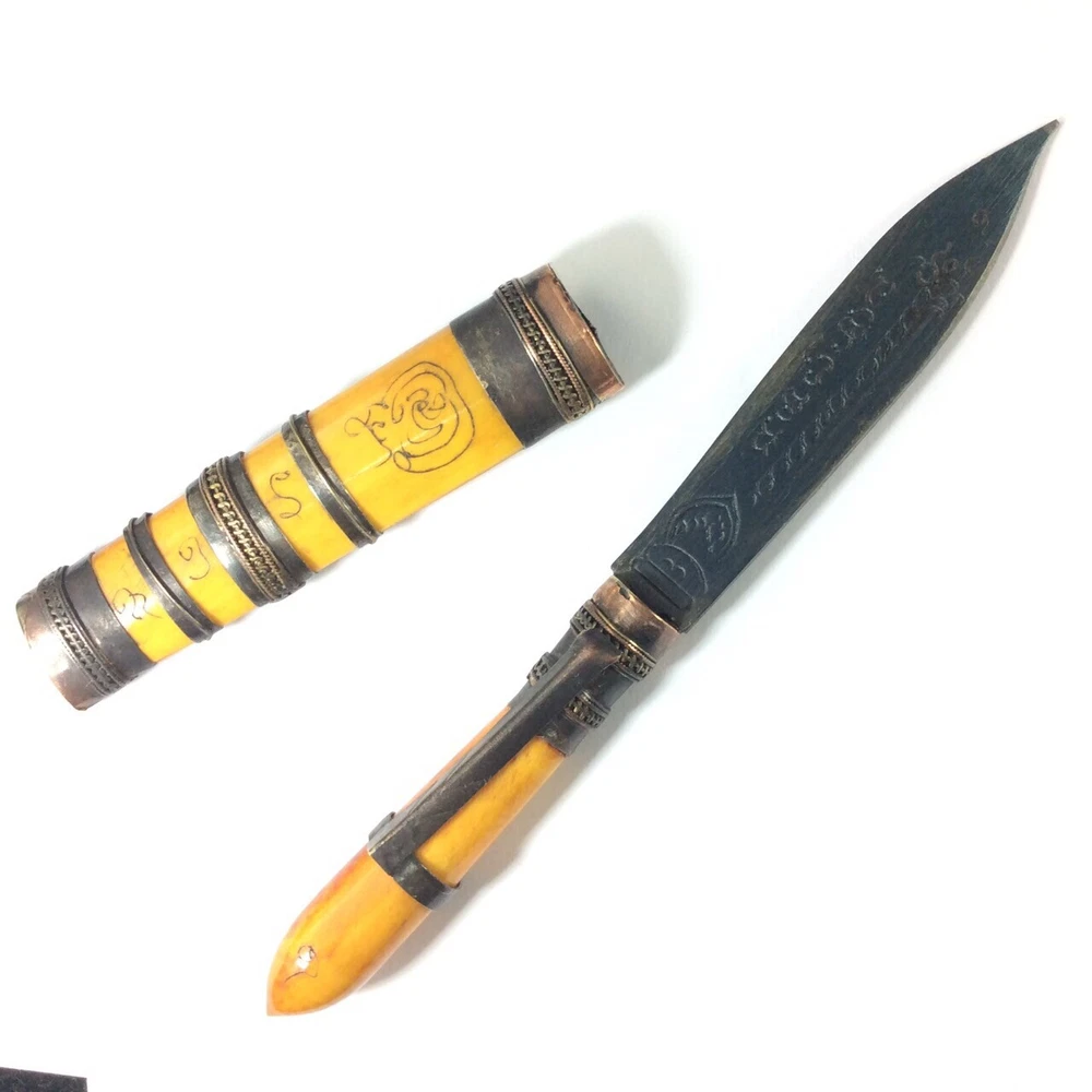 Luang Por DERM's Knife Amulet (มีดหมอ หลวงพ่อเดิม วัดหนองโพ) Amulet Name: Meed Mor LP Derm (มีดหมอ หลวงพ่อเดิม) Temple: Wat Nhong Pho, Nakhon Sawan Province (วัดหนองโพ, จ.นครสวรรค์) Material: Iron mixed materials Conditions: Good Conditions Size: 1.5 x 12.5 cms (approx.) Buddha knife' Meed Moh' monk amulet, you are bidding on buddha knife thai called 'Meed Moh' Buddhist prayed knife used for protect with the bad magic. This amulet to make potent by some magic from thai monk ' Lp Derm' from Wat Nong Pho temple at Nakornsawan province of Thailand. The handle made bone and bronze carving yahn. There is Buddhist the handle and the magic prayed word on the knife. There is the clip for attach to your shirt pocket. This Amulet , Fetish, Talisman will bring you Luck, Good things will unexpectedly happen to you. It also make you success in anything you hope for. This Amulet will bring Prosperity and ensure success in life. Believed to protect against evil. Invulnerable, Repel evil. Rich windfall wealth benevolent wealthy. Trade flourished, Subtle charm, Attractive for the opposite sex. It will make a fantastic gift for someone special or for a collector of Asian antiques. Keep it with you for Success Power or keep it in your house. Keep it with you for Evil Protection & Luck Builder Power or keep it in your house .This is a fabulous collector's items indeed. Buddha Amulet will bring you Luck, Good things will unexpectedly happen to you. It also make you success in anything you hope for. This Amulet will bring Prosperity and ensure success in human endeavors. Thai Buddhist Amulet Apinya Can Help And Improve More Better Your Life To Do Anything Smoother And Easy . Help the Owner More Get Better Anything That Your Wish And Hope . Help And Protection Owner Change Bad Situation To Good. FREE!! Shipping with registered mail WORLDWIDE with tracking number. If you have questions, feel free to write me on e B a y message. THANK YOU FOR SHOPPING