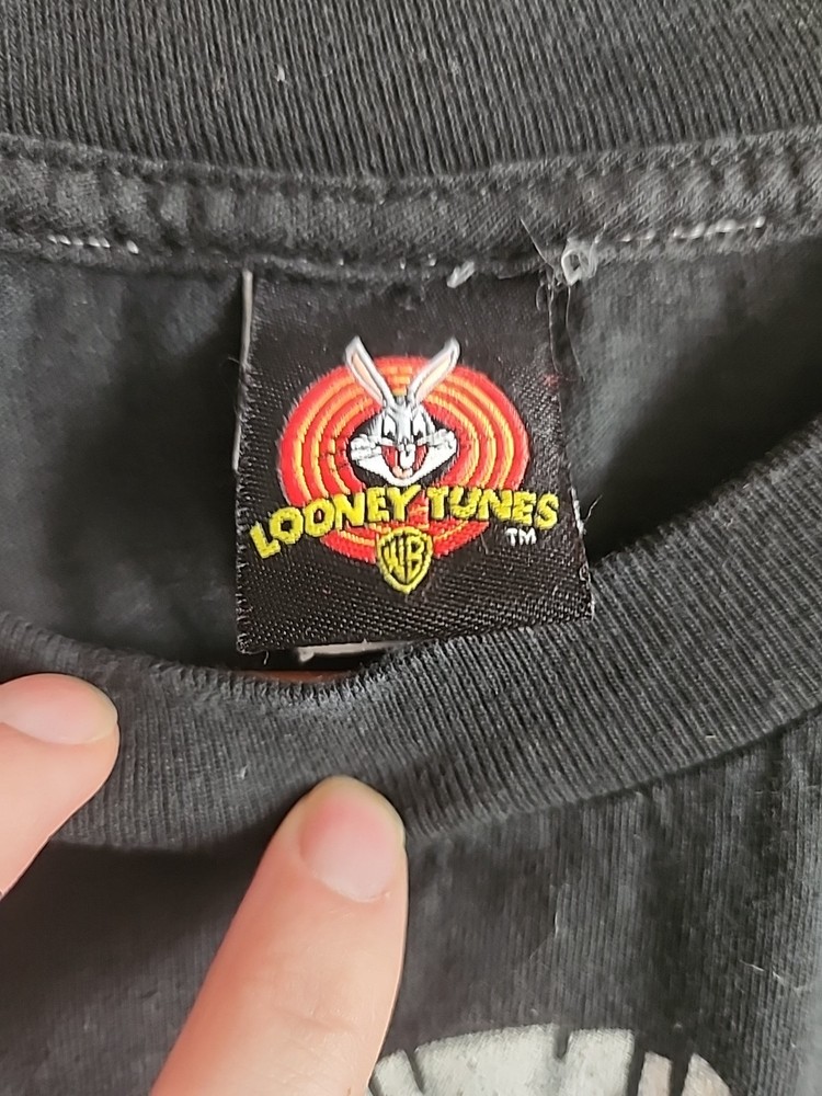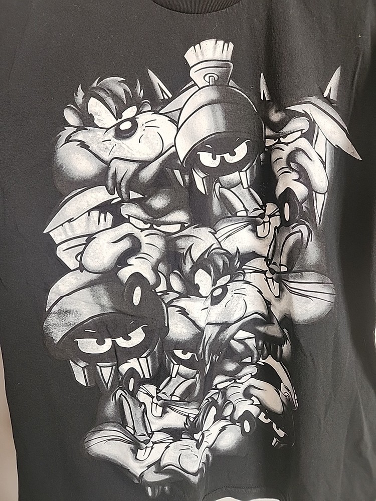 This rare Looney Tunes shirt features the beloved character Marvin the Martian, known for his mischievousness and wacky antics. With a classic animation theme, this shirt is made of 100% cotton, ensuring comfort and durability. Perfect for collectors and fans of the iconic Looney Tunes franchise, this shirt is a unique addition to any animation merchandise collection. Display your love for Bugs Bunny, Taz, and Wile E Coyote with this fun and nostalgic piece.