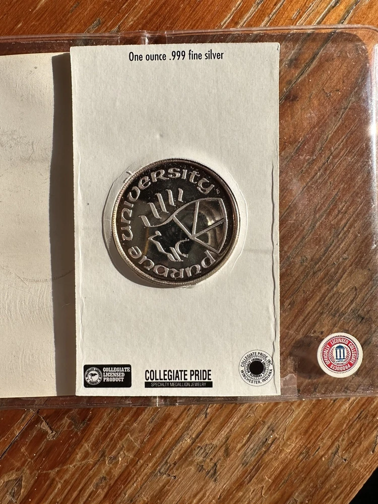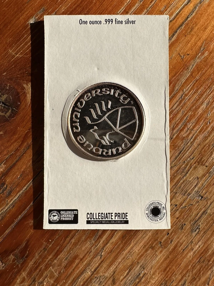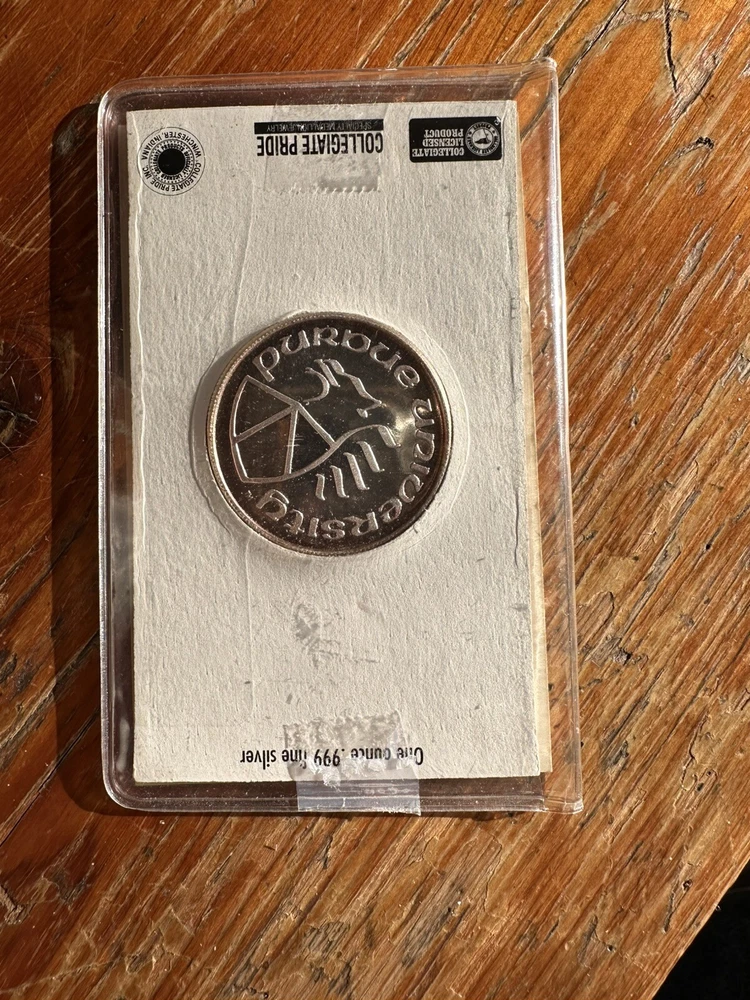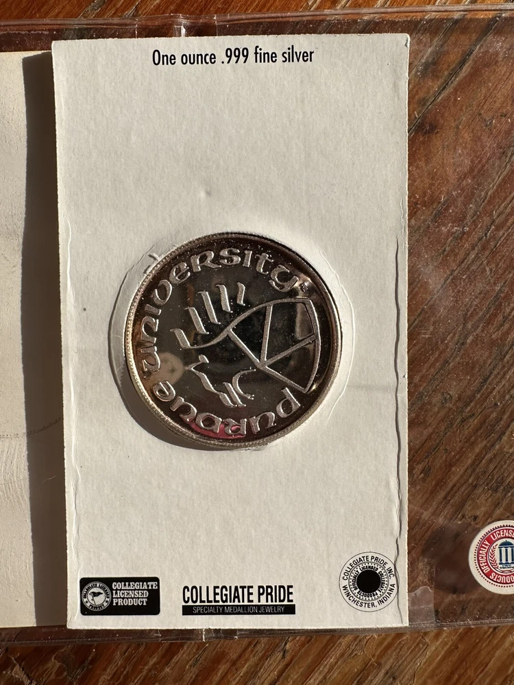 Vintage Purdue University College Football 1 ounce .999 Fine Silver Coin. The coin looks to be in good condition. The plastic case has very little age wear. Please see photos for condition. I try to describe items and take photos to show you exactly what you’ll receive. Please, if you are ever unsure or have questions about something please feel free to message me and ask before buying. I sell everything in “AS-IS” and As Found condition. So please make sure the item is acceptable to you before purchasing. Make sure to check my other listings! I’m happy to bundle items to help you save on shipping! I will be posting 100’s of sterling silver items such as jewelry, as well as .999 bars and rounds!