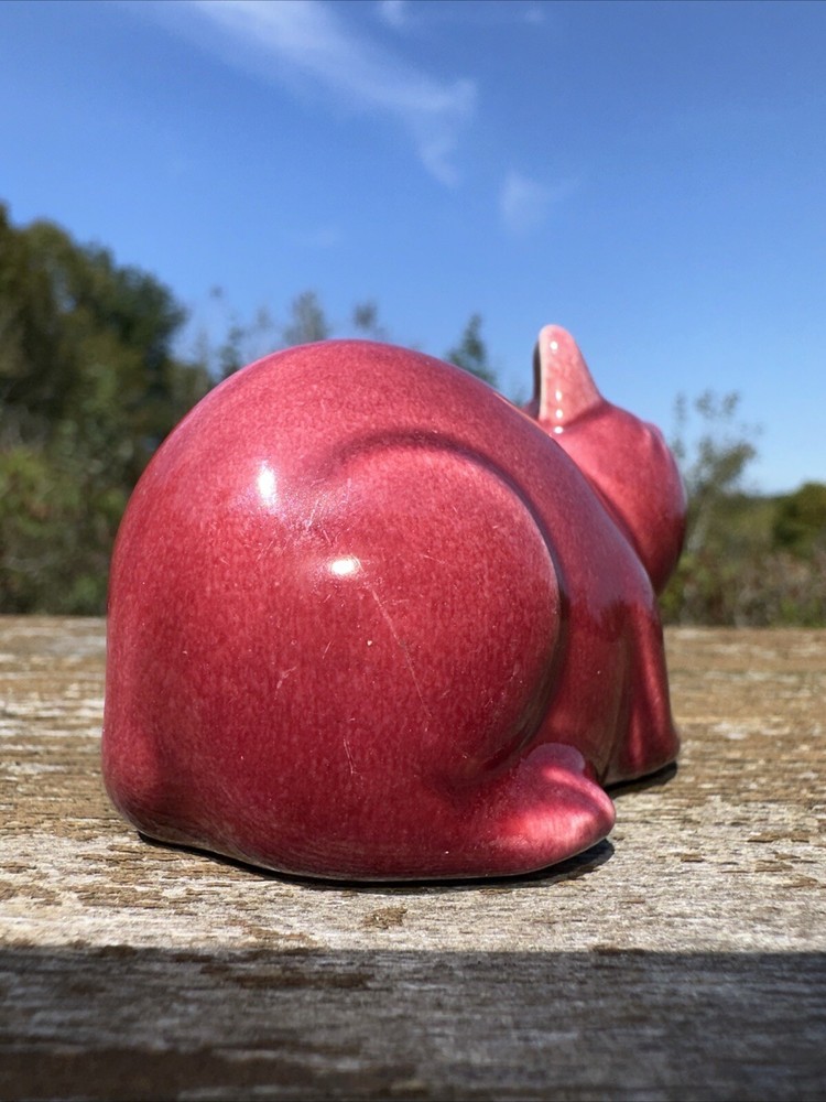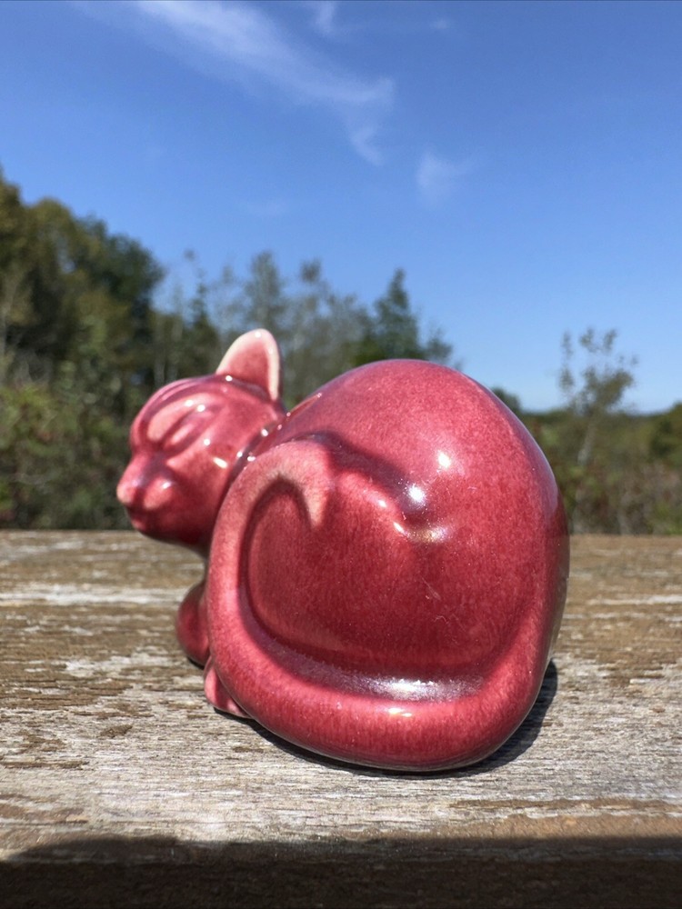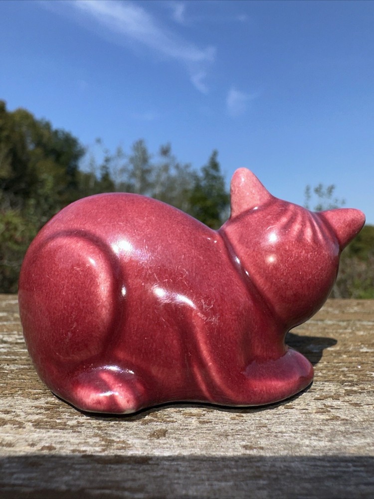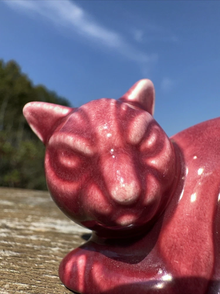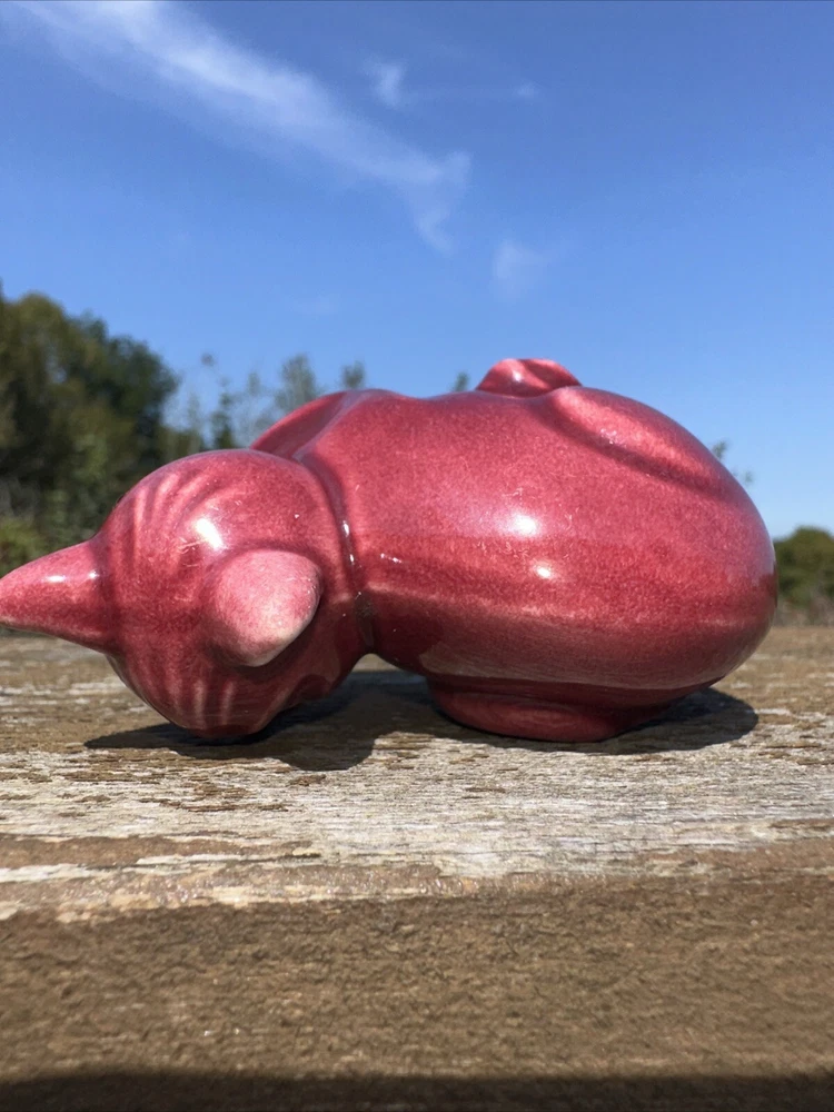 This beautiful figurine is a rare find for any collector. Made by Homer Laughlin, it features a charming cat design with a glossy red finish. The piece is made of high-quality ceramic and has a vintage feel to it. The Harlequin Animal Cat Maroon Rare Red Fiestaware Vintage figurine is a perfect addition to any decorative pottery collection. It is an original piece and was handmade in the United States. This art pottery piece is part of the Fiesta product line and is sure to catch the eye of any cat lover.