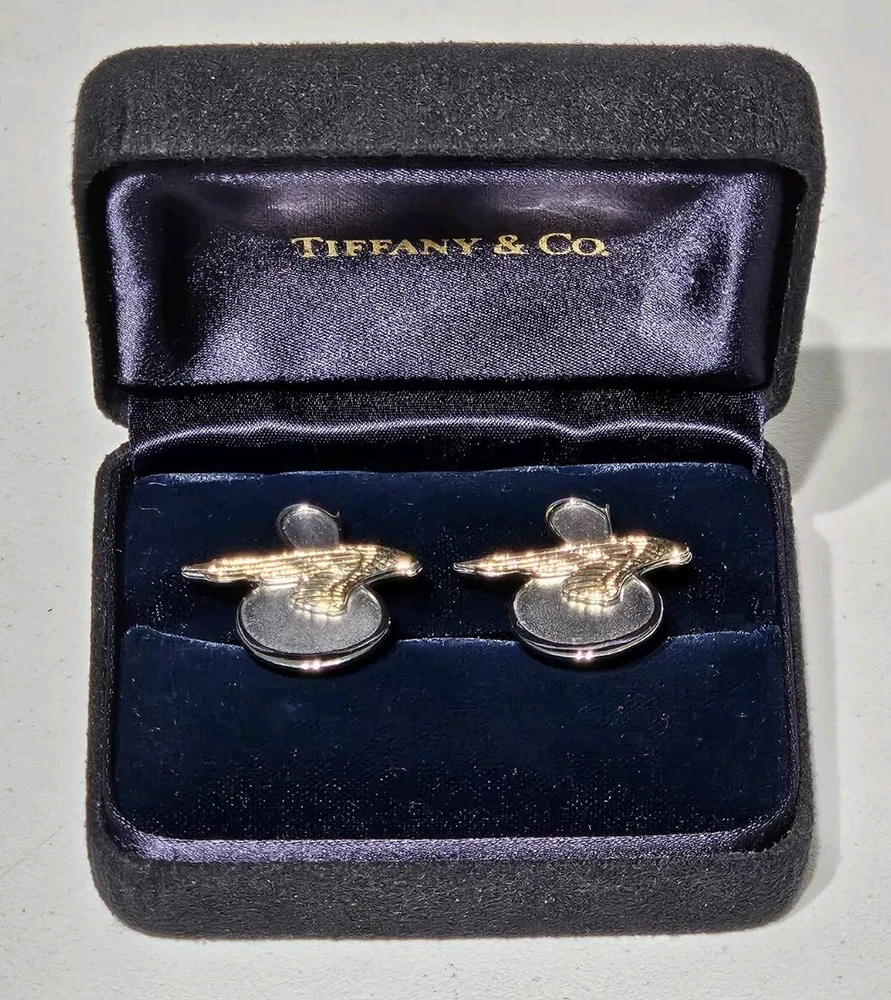 Up for sale is a Rare Pair of Tiffany & Co. Sikorsky Aircraft/Lockheed Martin Executive Sterling Silver and 14K Yellow Gold Cufflinks. Measures approximately 1" Wide X 7/8" High. Total weight is 11.4 Grams. Cufflinks come in original Tiffany & Co. gift box. Cufflinks are in excellent condition. Please feel free to ask questions. Thank you. From a smoke and pet free environment E-345