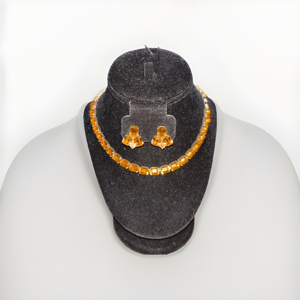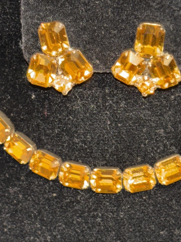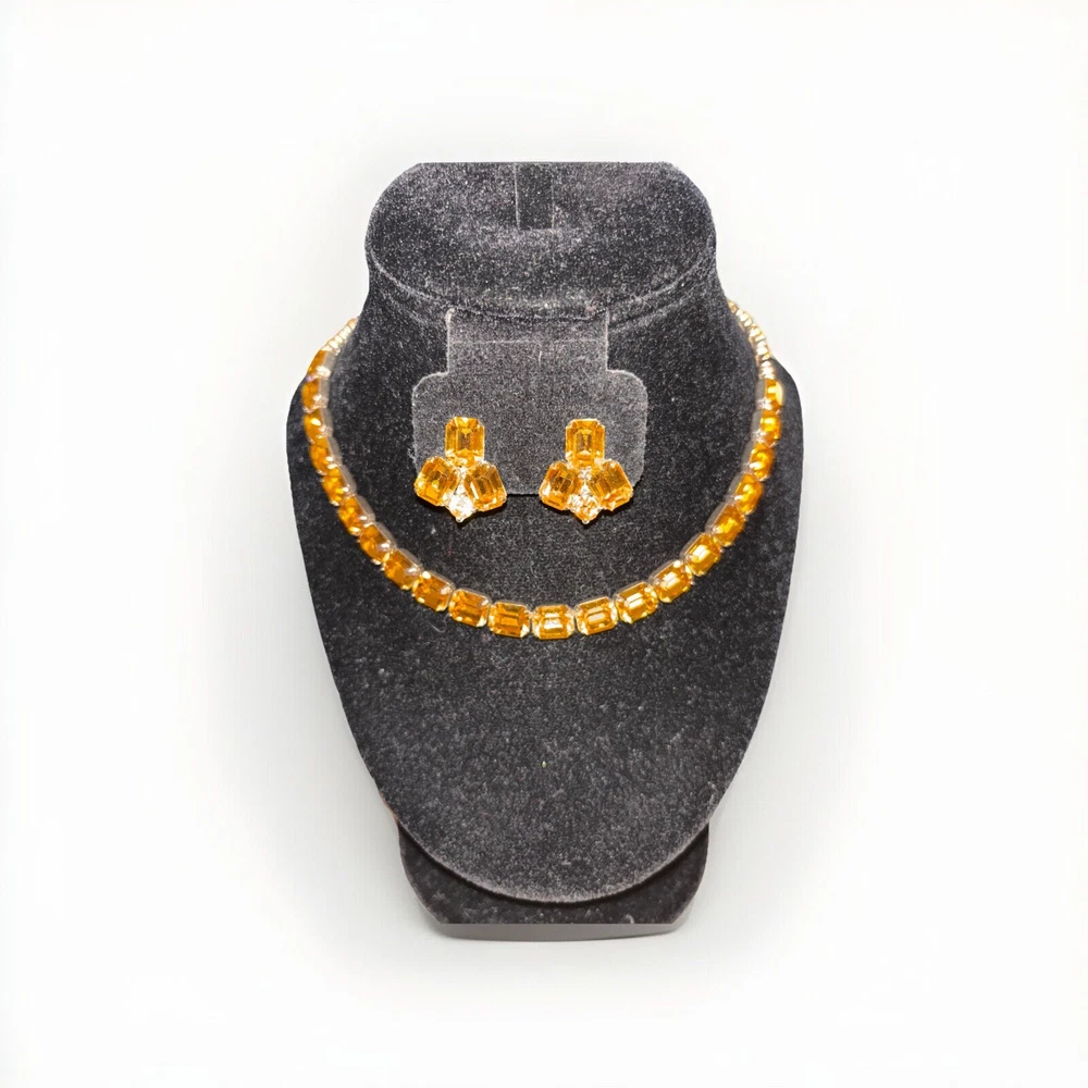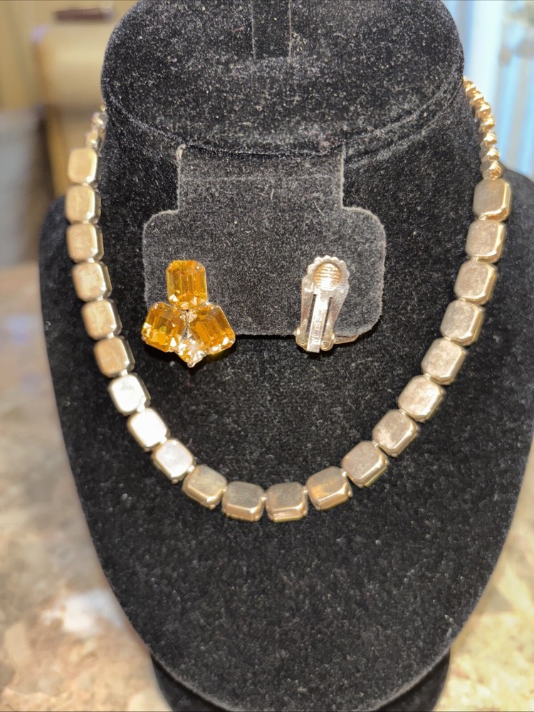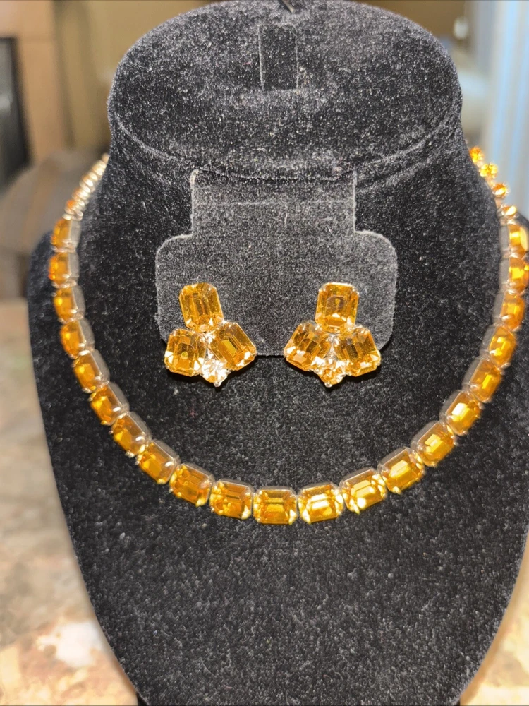 Weiss Topaz Necklace Earrings/Weiss Rhinestone Necklace/Weiss Emerald Cut Necklace Earrings/Weiss EmeraldCut TOPAZ/CITRINE Necklace Earrings