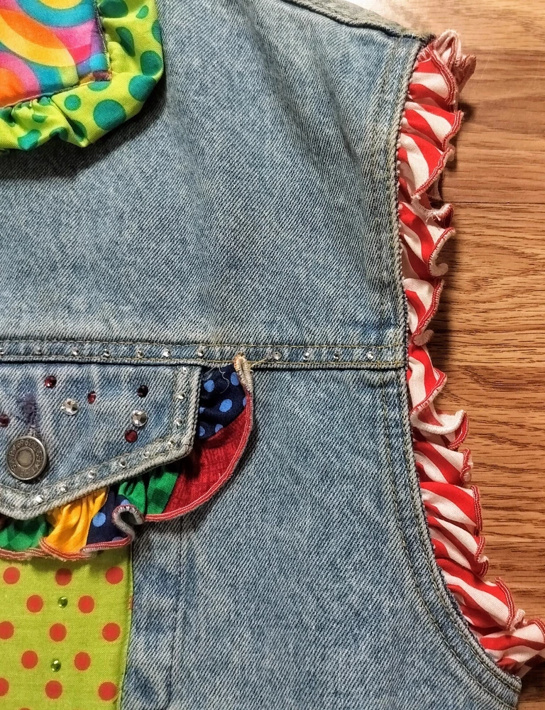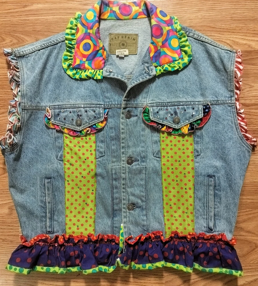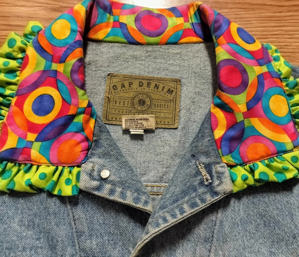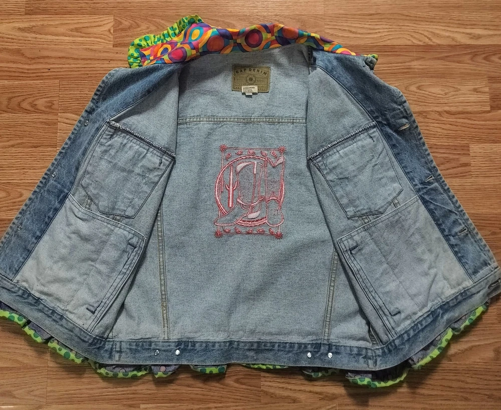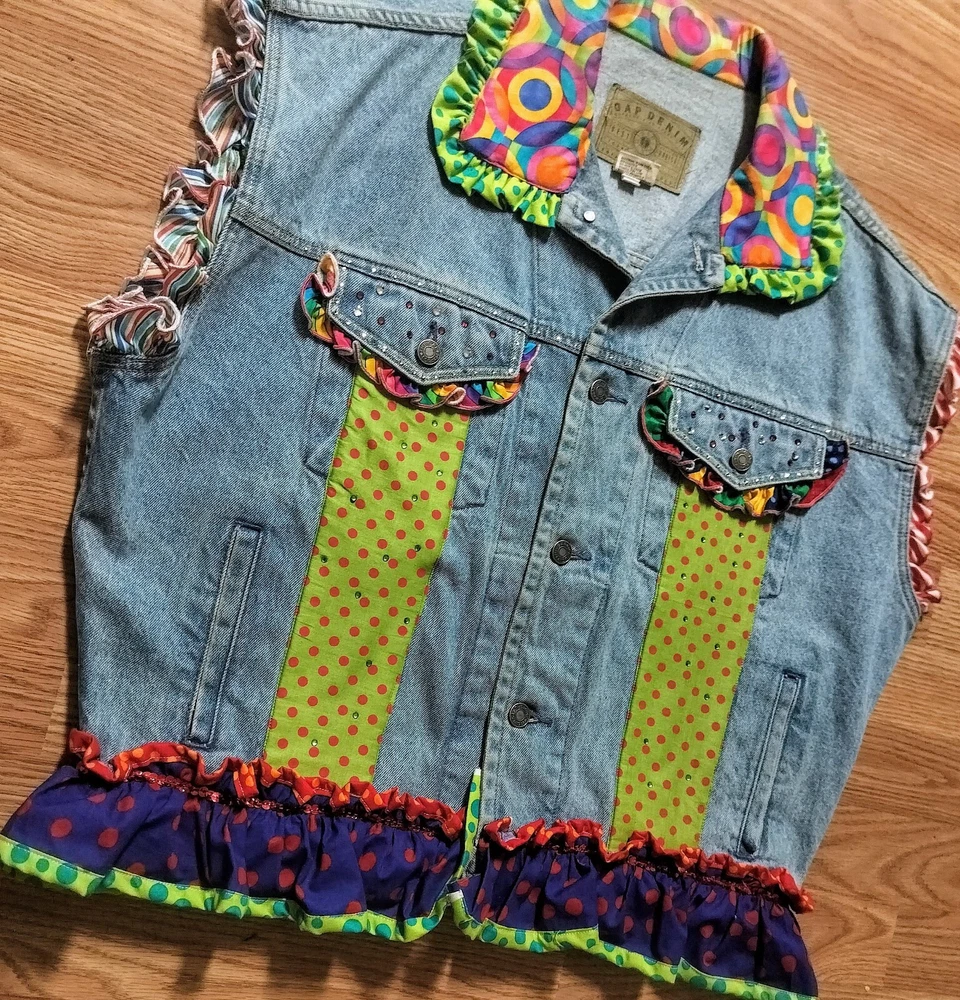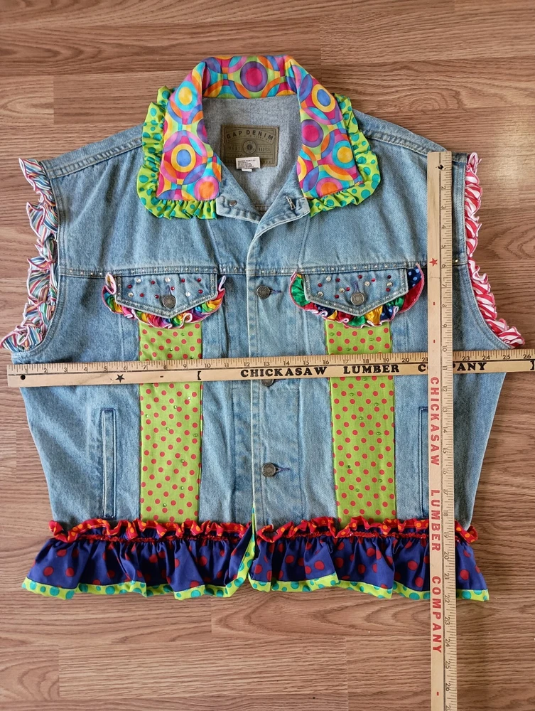 Elevate your streetwear game with this rare vintage Gap upcycled denim jean vest jacket. The two-tone pattern and fringed accents give it a unique and edgy look, perfect for any occasion. The vest features a collared neckline, button closure, and is embellished with embroidered logos, making it a statement piece in any outfit. Made of cotton and lined with cotton, this lightweight vest is perfect for walking, dancing, skateboarding, running, and jogging. The unisex design is suitable for both men and women, and it comes in a size medium. This Y2K-inspired piece is part of the Gap product line and is a must-have for any fashion enthusiast looking to add a touch of vintage to their wardrobe. Excellent pre-owned vintage condition. Unique and bold. Shipped USPS ground advantage. Message me with any questions for a prompt reply. Be sure to check out and consider following my eBay shop thriftthippie to see more amazing items listed daily. Y'all stay safe healthy and happy!!!