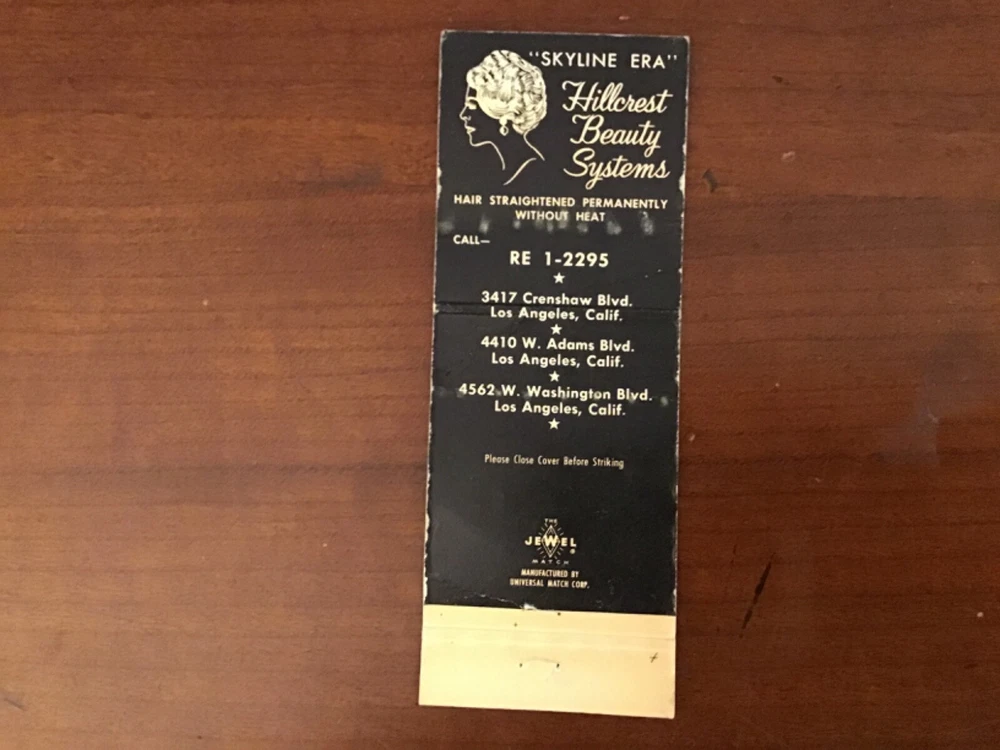 This vintage matchbook cover is a rare find for any collector. Featuring the Hillcrest Beauty Systems logo, this item is a piece of history from Los Angeles, CA. The cover is in great shape and is sure to make a unique addition to any collection. The matchbook is a vintage item that is perfect for collectors of advertisements, matchbooks, paper items, or other unique collectibles. The Hillcrest Beauty Systems logo adds an extra layer of interest to this piece and makes it a great conversation starter. Add this rare vintage matchbook cover to your collection today!