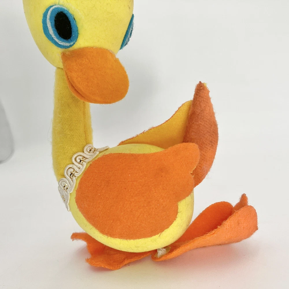 This is a rare and unique vintage Easter decoration from the 1950s. It features an anthropomorphic duck made of flocked styrofoam with felt and rubber details. The colorful decoration was manufactured in Japan and is a great addition to any collection of holiday memorabilia. ****SHIPS NEXT BUSINESS DAY****