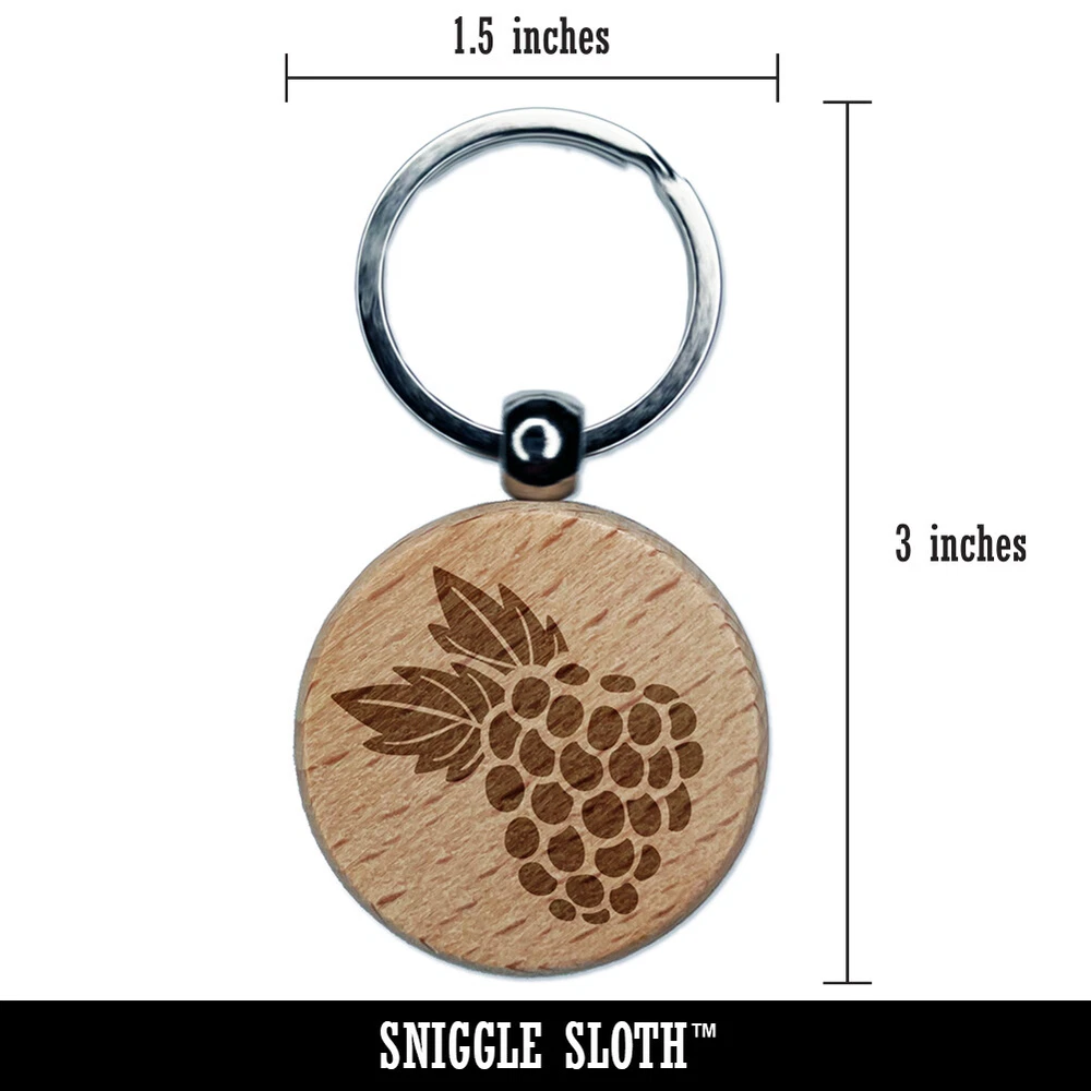 Raspberry Blackberry Fruit Engraved Wood Round Keychain Tag Charm