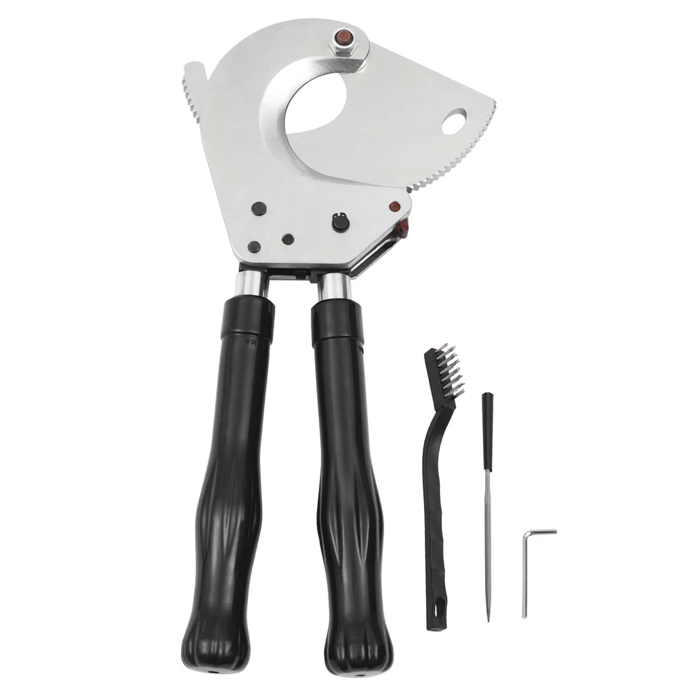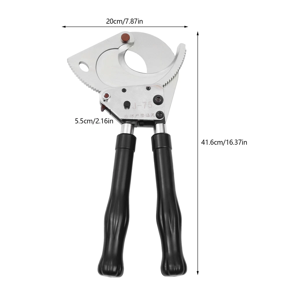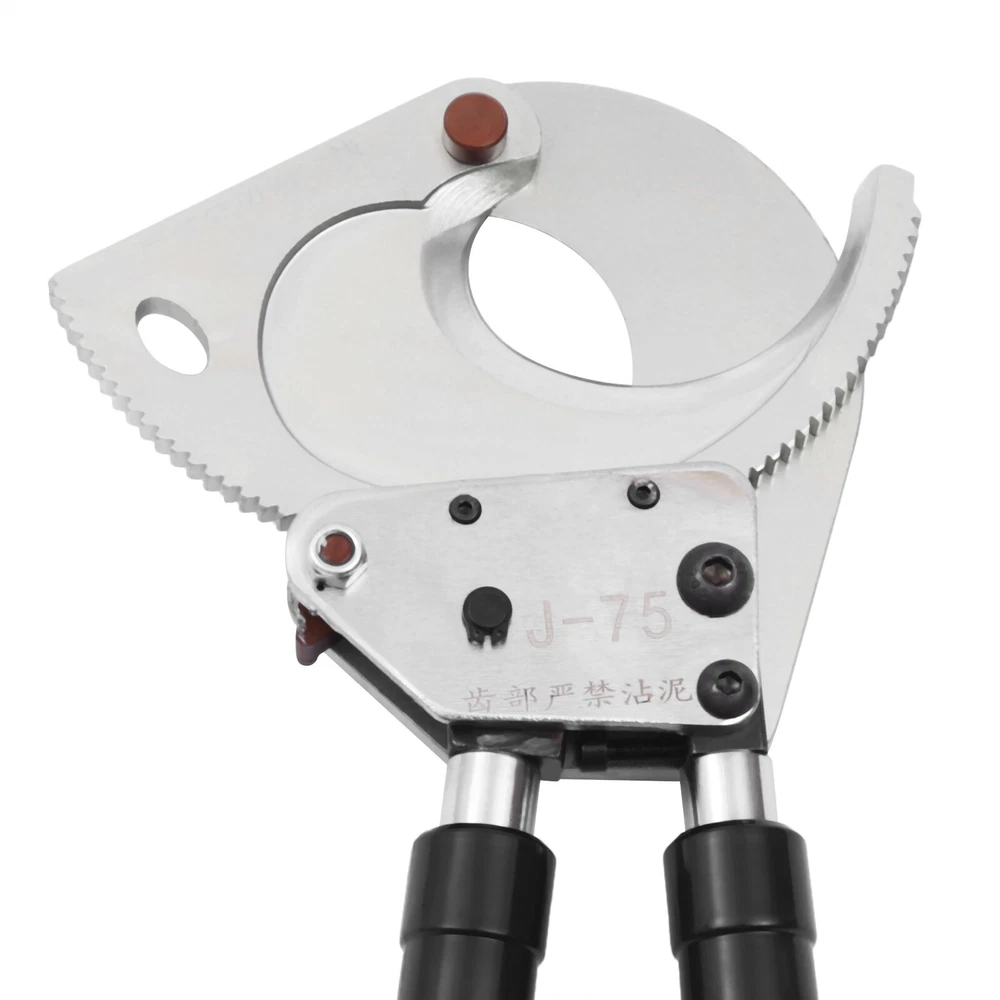 Specification Model: J75 Material: Spring Steel, Steel, Rubber Color: Black, Silver Process: Galvanization, Quenching Gear: Single Gear Cutting Range: ≤7.5cm/2.95in Handle Retractable Length: About 15cm/5.9in Gross Weight: 3.7kg/8.15lbs Net Weight: 3kg/6.61lbs Package Size: 43*24*17cm/17.71*9.44*6.69in Product Size: 41.6-58.7*20*5.5cm/16.37-23.11*7.87*2.16in Package Included 1*Ratchet Cable Cutter 1*Allen Key 1*Triangular File 1*Geared Brass Wire Brush 1*Carrying Bag 1*English Manual Ratchet Cable Cutter Ratcheting Wire Cut Pliers Up To 7cm/2.76in Cuting Description This is a ratchet cable cutter for cutting copper, aluminum, and armored cables. The high-strength ratchet construction facilitates the automatic locking of the cutting edge on the cable for precise and flat cutting. And the optimized lever handle makes cutting easier for the user. Specification Model: J75 Material: Spring Steel, Steel, Rubber Color: Black, Silver Process: Galvanization, Quenching Gear: Single Gear Cutting Range: ≤7.5cm/2.95in Handle Retractable Length: About 15cm/5.9in Gross Weight: 3.7kg/8.15lbs Net Weight: 3kg/6.61lbs Package Size: 43*24*17cm/17.71*9.44*6.69in Product Size: 41.6-58.7*20*5.5cm/16.37-23.11*7.87*2.16in Package Included 1*Ratchet Cable Cutter 1*Allen Key 1*Triangular File 1*Geared Brass Wire Brush 1*Carrying Bag 1*English Manual Key Features High-Quality Material : The ratchet cable cutter is forged from high-quality spring steel. The highly flexible, fatigue-resistant spring steel makes this ratchet cable cutter strong and durable. Sharp Edge : The ratchet cable cutter's edge is professionally hardened to provide a hardened hardness of 45 HRC. Long Service Life : The edge of the blade is galvanized, which improves its corrosion and rust resistance so that the ratcheting cutter's service life is extended. High Safety : The rubber sleeve of the handle can effectively insulate and protect you when cutting cables. And the non-slip design on the surface of the handle can effectively prevent slipping and increase safety. Complete Accessories : This ratchet cable cutter comes with an Allen key, triangular file, and geared brass wire brush. The Allen key is easy to adjust the tightness. The triangular file is used to polish gears and edges. The brush is used to clean the gears. Labor-saving and Efficient : The unique ratchet cable cutter's sharp edge and weight of only 6.61 pounds allow you to make fast cuts. Telescopic Handles : The handles are designed to be retractable and can extend up to 5.9 inches. Comfortable to Use : The handle is made of a high-quality steel tube, and its surface is covered with soft rubber to bring users a comfortable feeling of use. Easy to Carry : The ratchet cable cutter's weight of only 6.61 pounds and size of 16.37-23.11*7.87*2.16 inches makes it easy to carry. And equipped with storage bags for easy storage and carrying. Customer Service : We aim to provide quality products and services. If you have any problems, please feel free to contact us. We will reply and solve the problem for you as soon as possible. Details Pulling Fork : Pulling a fork can lock the internal structure to achieve a step blade activity so that cutting is more efficient and labor-saving. Nut : The flexible and robust nut holds the fixed and movable blades in place and allows the blades to be adjusted to suit different sizes of cable. Movable Blade : The flexible movable blade can be adjusted according to the size of the cable in time, making it more flexible. High Hardness Gear : The uniform hardness gear makes the ratcheting cutter stronger and more evenly stressed. High hardness gears make the cut flatter. Carrying Bag : We provide you with a carrying bag so that you can store your items or easily carry them outdoor or in other locations. Application The ratchet cable cutter is capable of cutting aluminum, copper and armored cables of φ less than or equal to 2.95 inches. Way of Use 1. Rotate the handle sheath to the inside. The handle is free to retract. Rotate the handle sheath to the outside, the handle length is locked. The handle extends to cut thicker cables easily. 2. The movable handle is unlocked when the handle is extended, which allows you to swing it up and down freely for easy use. 3. Turn the rotary cutter blade clockwise to clamp the cable and then trigger the movable handle until the cable is cut. 4. In the cutting process, if you want to return the knife, you can lock the movable handle and then tinker with the brace red block. At this point, the hand holding the movable handle can be released. Then rotate the blade counterclockwise. 5. After cutting, the movable handle will be close to the fixed handle until it is completely retracted and locked, so that the handle can be fixed. Notes 1. The cable cutter for hammering or being hammered, so as not to deform the blade damage, the cable cutter is not allowed to connect the long handle at will to use. 2. The different specifications of the cable cutter have a different range of use and do not exceed the scope of use. 3. The active handle each time you toggle, use the rotating handle to advance a tooth, and make a 'blah blah blah' sound, such as no sound, indicating that the cable cutter internal failure, should be repaired promptly. 4. The cable cutter after a long time, the knife mouth will inevitably be damaged, at this time available oil stone or high-speed grinding head repair, such as serious damage should be replaced promptly. 5. The handle of the insulation sheath should often check, do not allow a break. 6. Check all the screws on the end cover plate, such as loose ones should be re-tightened once, and the oil hole should be as often as possible to inject lubricant. 7. The product cannot be used to shear steel strands. 8. Please allow the slight color difference caused by the shooting light and 1-3cm error due to manual measurement. Please make sure you do not mind before you order. Payment Delivery details Terms of s