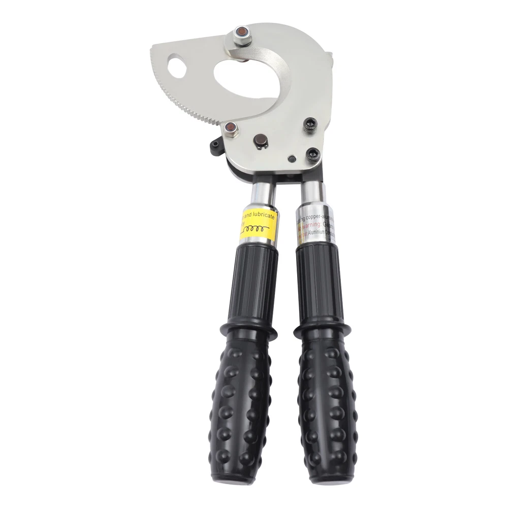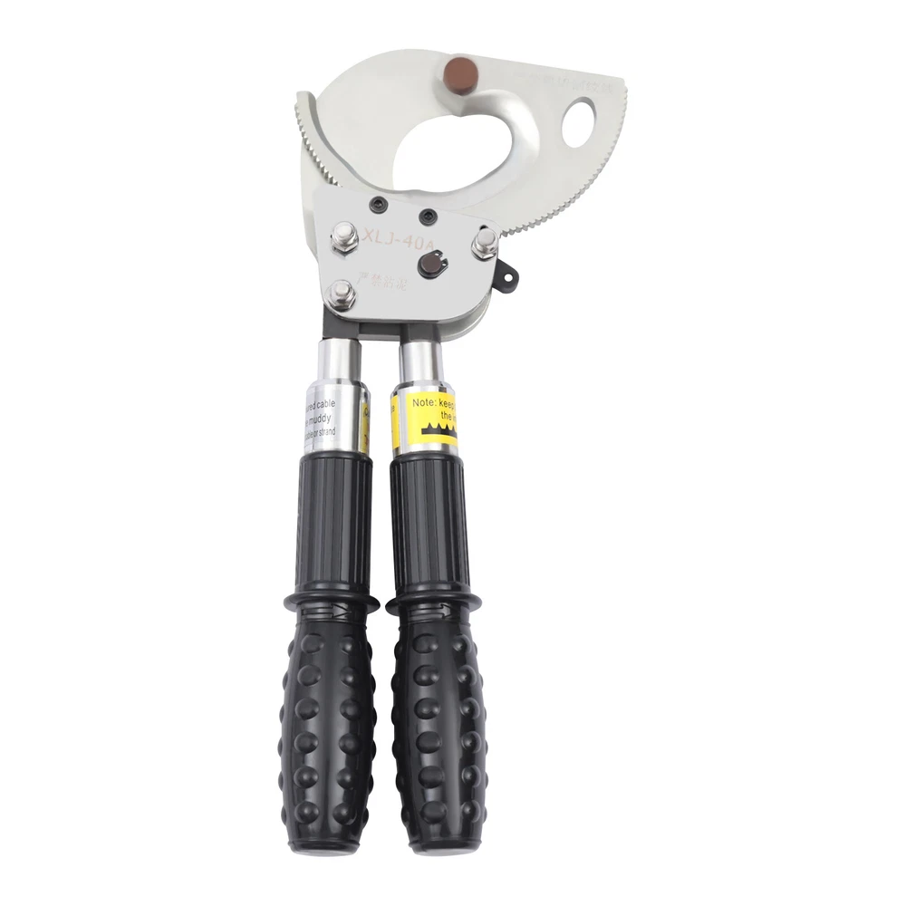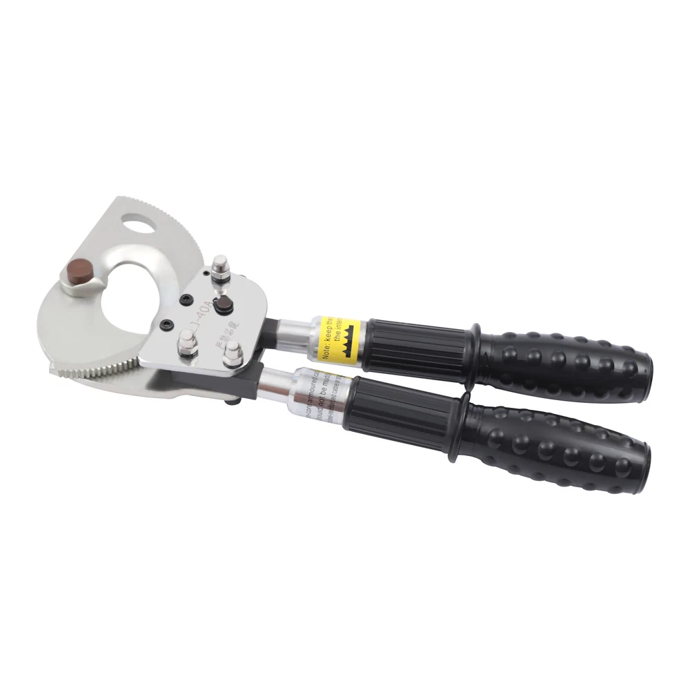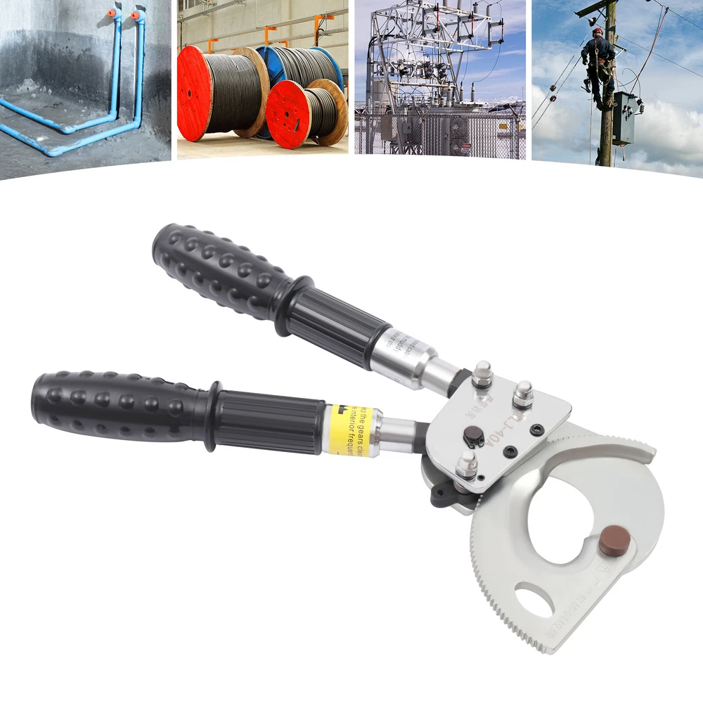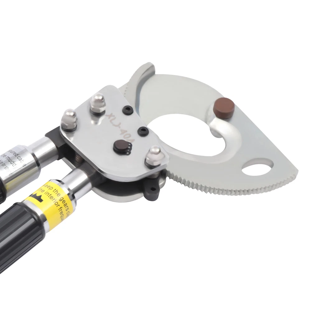Description This is a ratchet cable cutter for cutting copper, aluminum, and armored cables. The high-strength ratchet construction facilitates the automatic locking of the cutting edge on the cable for precise and flat cutting. And the optimized lever handle makes cutting easier for the user. Specification Model: J40A Material: Spring Steel, Steel, Rubber Color: Black, Silver Process: Forging, Quenching Gear: Single Gear Cutting Range: Single-core, ≤300mm2. φ≤30mm/1.18in Handle Retractable Length: 15cm/5.9in Net Weight: 2.5kg/5.51lbs Package Size: 40*17*5cm/15.74*6.69*1.96in Product Size: 31-42*14.5*5.5cm/12.20-16.53*5.70*2.16in Ratchet Cable Cutter Ratcheting Wire Cutting Tool Heavy Duty Retractable Handle Beschreibung Ratchet Cable Cutter Ratcheting Wire Cutting Tool Heavy Duty Retractable Handle Description This is a ratchet cable cutter for cutting copper, aluminum, and armored cables. The high-strength ratchet construction facilitates the automatic locking of the cutting edge on the cable for precise and flat cutting. And the optimized lever handle makes cutting easier for the user. Application The ratchet cable cutter is capable of cutting single-core 300mm 2 or φ less than or equal to 1.18mm copper and aluminum armored cable. Key Features High-Quality Material : The ratchet cable cutter is forged from high-quality spring steel. The highly flexible, fatigue-resistant spring steel makes this ratchet cable cutter strong and durable. Sharp Edge : The ratchet cable cutter's edge is professionally hardened to provide a hardened hardness of 45 HRC. This sharp and hardened edge allows for efficient cutting with ease. Long Service Life : The edge of the blade is galvanized, which improves its corrosion and rust resistance so that the ratcheting cutter's service life is extended. High Safety : The rubber sleeve of the handle can effectively insulate and protect you when cutting cables. The soft and insulated handle makes it more comfortable and safe to use. And the non-slip design on the surface of the handle can effectively prevent slipping and increase safety. Complete Accessories : This ratchet cable cutter comes with an Allen key, triangular file, and geared brass wire brush. The Allen key is easy to adjust the tightness. The triangular file is used to polish gears and edges. The brush is used to clean the gears. Such a complete set of accessories makes the maintenance of the product more convenient. Telescopic Handles : The handles are designed to be retractable and can extend up to 5.9 inches. This allows users to be more flexible and labor-saving in their operations. Way of Use 1. Rotate the handle sheath to the inside. The handle is free to retract. Rotate the handle sheath to the outside, the handle length is locked. The handle extends to cut thicker cables easily. 2. The movable handle is unlocked when the handle is extended, which allows you to swing it up and down freely for easy use. 3. Turn the rotary cutter blade clockwise to clamp the cable and then trigger the movable handle until the cable is cut. 4. In the cutting process, if you want to return the knife, you can lock the movable handle and then tinker with the brace red block. At this point, the hand holding the movable handle can be released. Then rotate the blade counterclockwise. 5. After cutting, the movable handle will be close to the fixed handle until it is completely retracted and locked, so that the handle can be fixed. Details Pulling Fork : Pulling a fork can lock the internal structure to achieve a step blade activity so that cutting is more efficient and labor-saving. Nut : The flexible and robust nut holds the fixed and movable blades in place and allows the blades to be adjusted to suit different sizes of cable. Movable Blade : The flexible movable blade can be adjusted according to the size of the cable in time, making it more flexible. High Hardness Gear : The uniform hardness gear makes the ratcheting cutter stronger and more evenly stressed. High hardness gears make the cut flatter. Carrying Bag : We provide you with a carrying bag so that you can store your items or easily carry them outdoor or in other locations. Labor-saving and Efficient : The unique ratchet cable cutter's sharp edge and weight of only 2.20 pounds allow you to make fast cuts. And the handle uses a labor-saving lever principle, allowing you to easily complete the cut. Comfortable to Use : The handle is made of a high-quality steel tube, and its surface is covered with soft rubber to bring users a comfortable feeling of use. Even after long hours of use, this labor-saving and easy-to-operate ratchet cable cutter will not make you too tired. Easy to Carry : The ratchet cable cutter's weight of only 5.51 pounds and size of 12.20-16.53*5.70*2.16 inches makes it easy to carry. And equipped with storage bags for easy storage and carrying. Customer Service: We aim to provide quality products and services. If you have any problems, please feel free to contact us. We will reply and solve the problem for you as soon as possible. Specification Model: J40A Material: Spring Steel, Steel, Rubber Color: Black, Silver Process: Forging, Quenching Gear: Single Gear Cutting Range: Single-core, ≤300mm 2 . φ≤30mm/1.18in Handle Retractable Length: 15cm/5.9in Net Weight: 2.5kg/5.51lbs Package Size: 40*17*5cm/15.74*6.69*1.96in Product Size: 31-42*14.5*5.5cm/12.20-16.53*5.70*2.16in Package Included 1*Ratchet Cable Cutter 2*Allen Keys 2*Triangular Files 2*Geared Brass Wire Brushes 1*English Manual Notes The cable cutter for hammering or being hammered, so as not to deform the blade damage, the cable cutter is not allowed to connect the long handle at will to use. The different specifications of the cable cutter have a different range of use and do not exceed the scope of use. The active handle each time you toggle, use the rotating handle to advance a tooth, and make a 'blah blah blah' sound, such as no sound, indicating that the cable cutter int