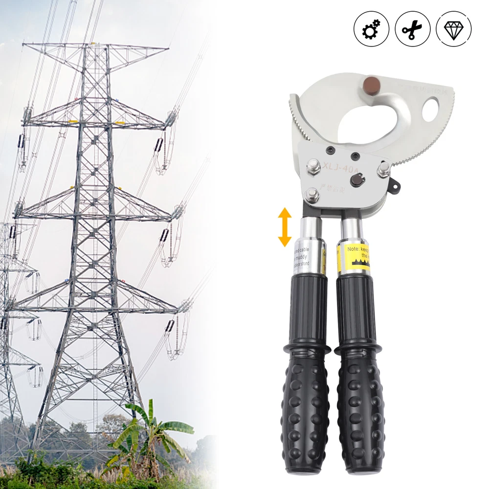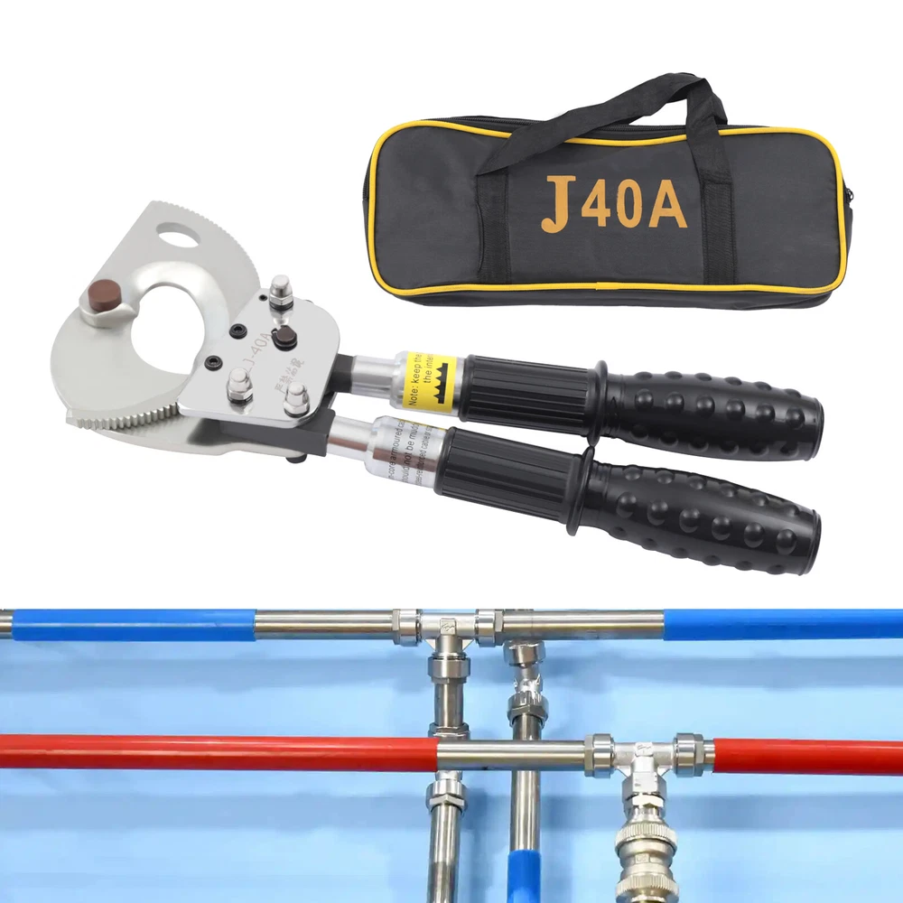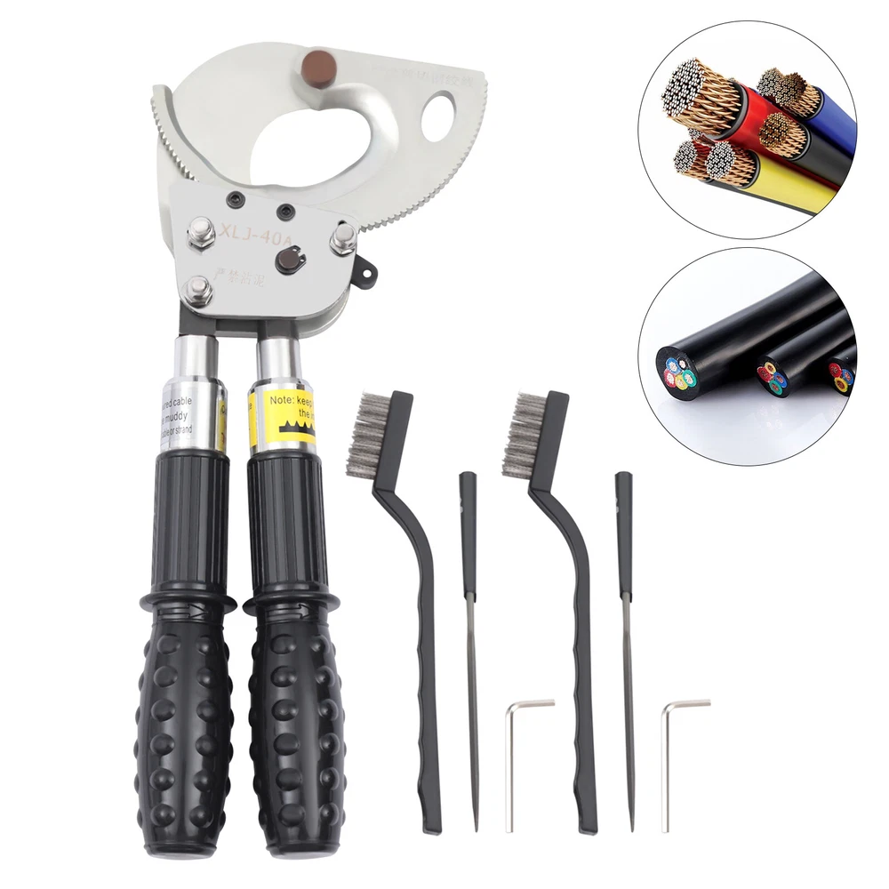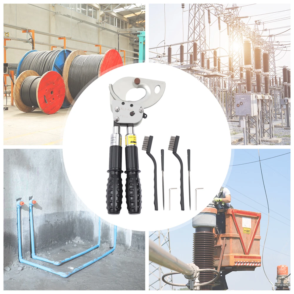 Description This is a ratchet cable cutter for cutting copper, aluminum, and armored cables. The high-strength ratchet construction facilitates the automatic locking of the cutting edge on the cable for precise and flat cutting. And the optimized lever handle makes cutting easier for the user. Specification Model: J40A Material: Spring Steel, Steel, Rubber Color: Black, Silver Process: Forging, Quenching Gear: Single Gear Cutting Range: Single-core, ≤300mm2. φ≤30mm/1.18in Handle Retractable Length: 15cm/5.9in Net Weight: 2.5kg/5.51lbs Package Size: 40*17*5cm/15.74*6.69*1.96in Product Size: 31-42*14.5*5.5cm/12.20-16.53*5.70*2.16in Ratchet Cable Cutter Ratcheting Wire Cutting Tool Heavy Duty Retractable Handle Beschreibung Ratchet Cable Cutter Ratcheting Wire Cutting Tool Heavy Duty Retractable Handle Description This is a ratchet cable cutter for cutting copper, aluminum, and armored cables. The high-strength ratchet construction facilitates the automatic locking of the cutting edge on the cable for precise and flat cutting. And the optimized lever handle makes cutting easier for the user. Application The ratchet cable cutter is capable of cutting single-core 300mm 2 or φ less than or equal to 1.18mm copper and aluminum armored cable. Key Features High-Quality Material : The ratchet cable cutter is forged from high-quality spring steel. The highly flexible, fatigue-resistant spring steel makes this ratchet cable cutter strong and durable. Sharp Edge : The ratchet cable cutter's edge is professionally hardened to provide a hardened hardness of 45 HRC. This sharp and hardened edge allows for efficient cutting with ease. Long Service Life : The edge of the blade is galvanized, which improves its corrosion and rust resistance so that the ratcheting cutter's service life is extended. High Safety : The rubber sleeve of the handle can effectively insulate and protect you when cutting cables. The soft and insulated handle makes it more comfortable and safe to use. And the non-slip design on the surface of the handle can effectively prevent slipping and increase safety. Complete Accessories : This ratchet cable cutter comes with an Allen key, triangular file, and geared brass wire brush. The Allen key is easy to adjust the tightness. The triangular file is used to polish gears and edges. The brush is used to clean the gears. Such a complete set of accessories makes the maintenance of the product more convenient. Telescopic Handles : The handles are designed to be retractable and can extend up to 5.9 inches. This allows users to be more flexible and labor-saving in their operations. Way of Use 1. Rotate the handle sheath to the inside. The handle is free to retract. Rotate the handle sheath to the outside, the handle length is locked. The handle extends to cut thicker cables easily. 2. The movable handle is unlocked when the handle is extended, which allows you to swing it up and down freely for easy use. 3. Turn the rotary cutter blade clockwise to clamp the cable and then trigger the movable handle until the cable is cut. 4. In the cutting process, if you want to return the knife, you can lock the movable handle and then tinker with the brace red block. At this point, the hand holding the movable handle can be released. Then rotate the blade counterclockwise. 5. After cutting, the movable handle will be close to the fixed handle until it is completely retracted and locked, so that the handle can be fixed. Details Pulling Fork : Pulling a fork can lock the internal structure to achieve a step blade activity so that cutting is more efficient and labor-saving. Nut : The flexible and robust nut holds the fixed and movable blades in place and allows the blades to be adjusted to suit different sizes of cable. Movable Blade : The flexible movable blade can be adjusted according to the size of the cable in time, making it more flexible. High Hardness Gear : The uniform hardness gear makes the ratcheting cutter stronger and more evenly stressed. High hardness gears make the cut flatter. Carrying Bag : We provide you with a carrying bag so that you can store your items or easily carry them outdoor or in other locations. Labor-saving and Efficient : The unique ratchet cable cutter's sharp edge and weight of only 2.20 pounds allow you to make fast cuts. And the handle uses a labor-saving lever principle, allowing you to easily complete the cut. Comfortable to Use : The handle is made of a high-quality steel tube, and its surface is covered with soft rubber to bring users a comfortable feeling of use. Even after long hours of use, this labor-saving and easy-to-operate ratchet cable cutter will not make you too tired. Easy to Carry : The ratchet cable cutter's weight of only 5.51 pounds and size of 12.20-16.53*5.70*2.16 inches makes it easy to carry. And equipped with storage bags for easy storage and carrying. Customer Service: We aim to provide quality products and services. If you have any problems, please feel free to contact us. We will reply and solve the problem for you as soon as possible. Specification Model: J40A Material: Spring Steel, Steel, Rubber Color: Black, Silver Process: Forging, Quenching Gear: Single Gear Cutting Range: Single-core, ≤300mm 2 . φ≤30mm/1.18in Handle Retractable Length: 15cm/5.9in Net Weight: 2.5kg/5.51lbs Package Size: 40*17*5cm/15.74*6.69*1.96in Product Size: 31-42*14.5*5.5cm/12.20-16.53*5.70*2.16in Package Included 1*Ratchet Cable Cutter 2*Allen Keys 2*Triangular Files 2*Geared Brass Wire Brushes 1*English Manual Notes The cable cutter for hammering or being hammered, so as not to deform the blade damage, the cable cutter is not allowed to connect the long handle at will to use. The different specifications of the cable cutter have a different range of use and do not exceed the scope of use. The active handle each time you toggle, use the rotating handle to advance a tooth, and make a 'blah blah blah' sound, such as no sound, indicating that the cable cutter int